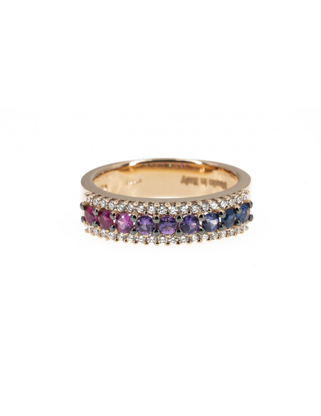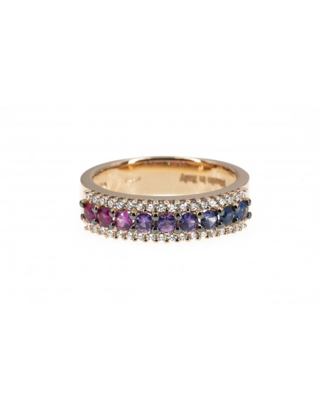Anello con zaffiri multicolor r diamanti taglio brillante. Z, ct.0,60 dD. ct. 0,27