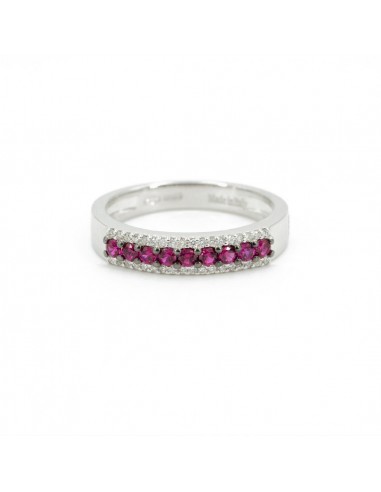 Anello in oro bianco (750) con pavè di Rubini e Diamanti