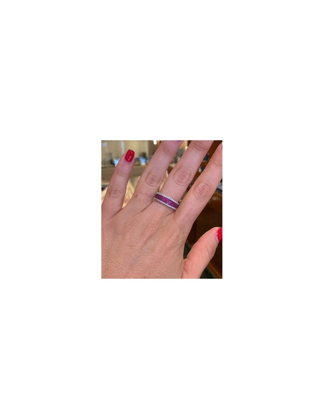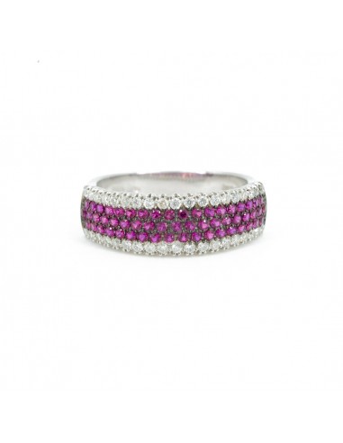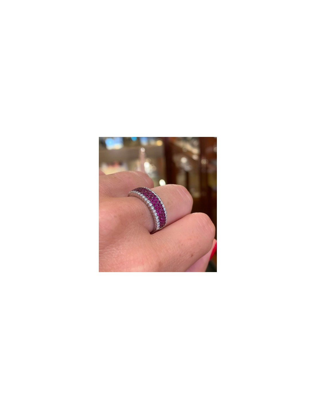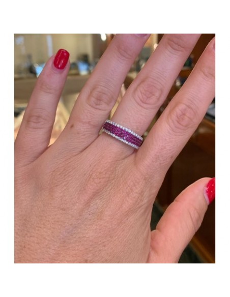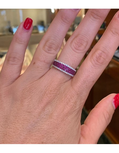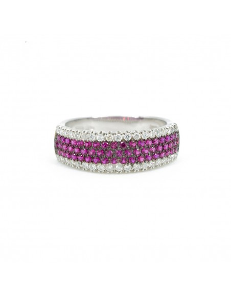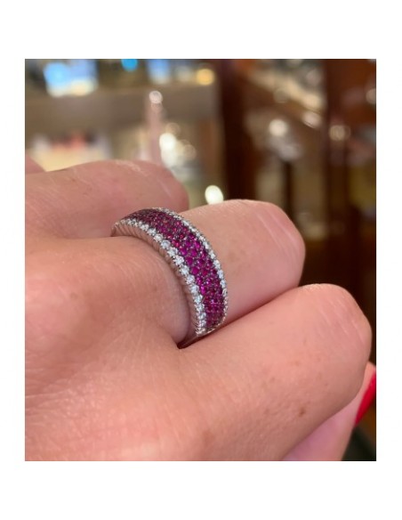 Anello a fascia in oro bianco con pavè di Rubini e Diamanti