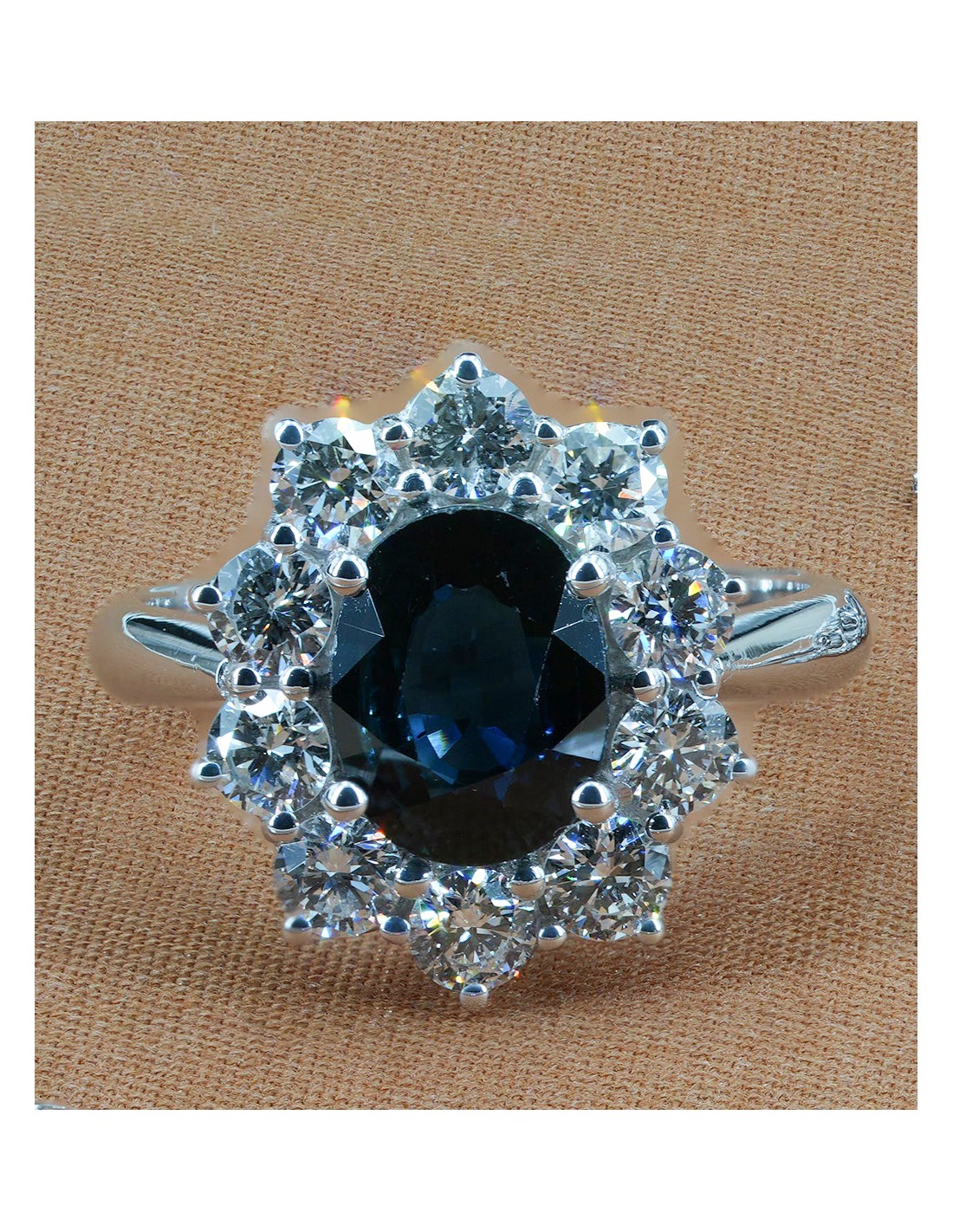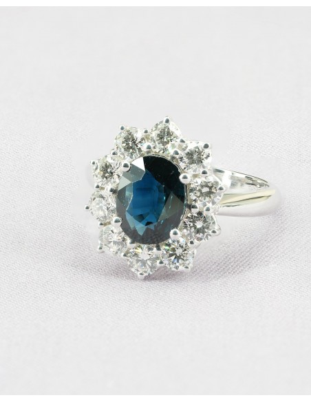 Anello in oro bianco, diamanti e zaffiro Aprile gioielli