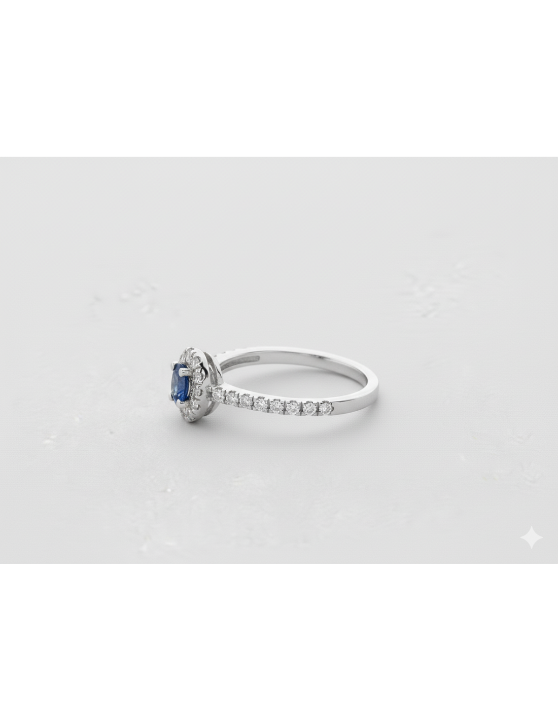 Anello in oro bianco, diamanti e zaffiro Giorgio Visconti