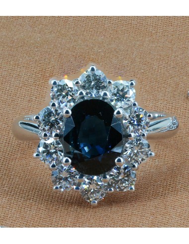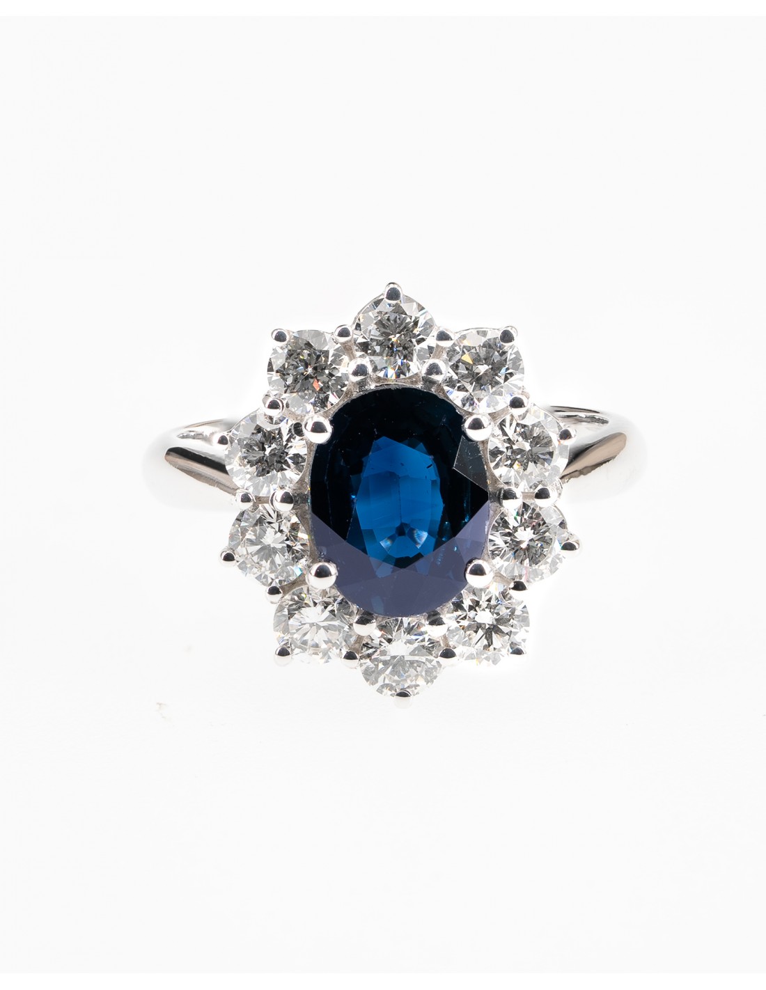 Anello in oro bianco, diamanti e zaffiro Aprile gioielli