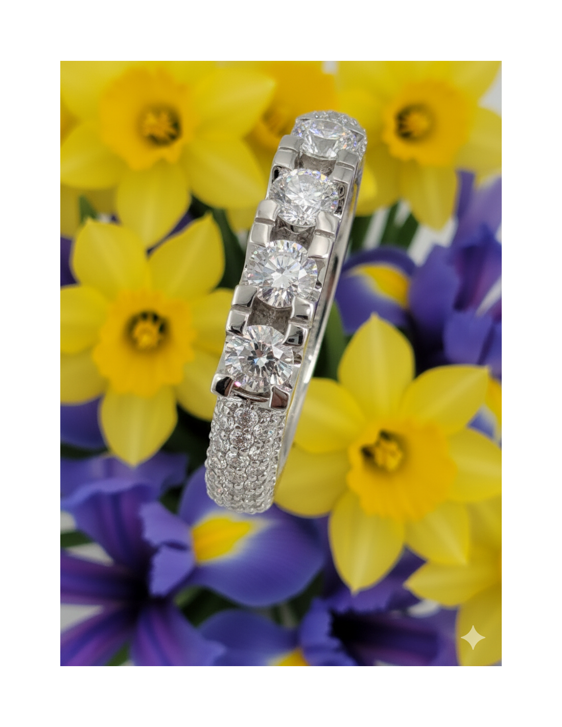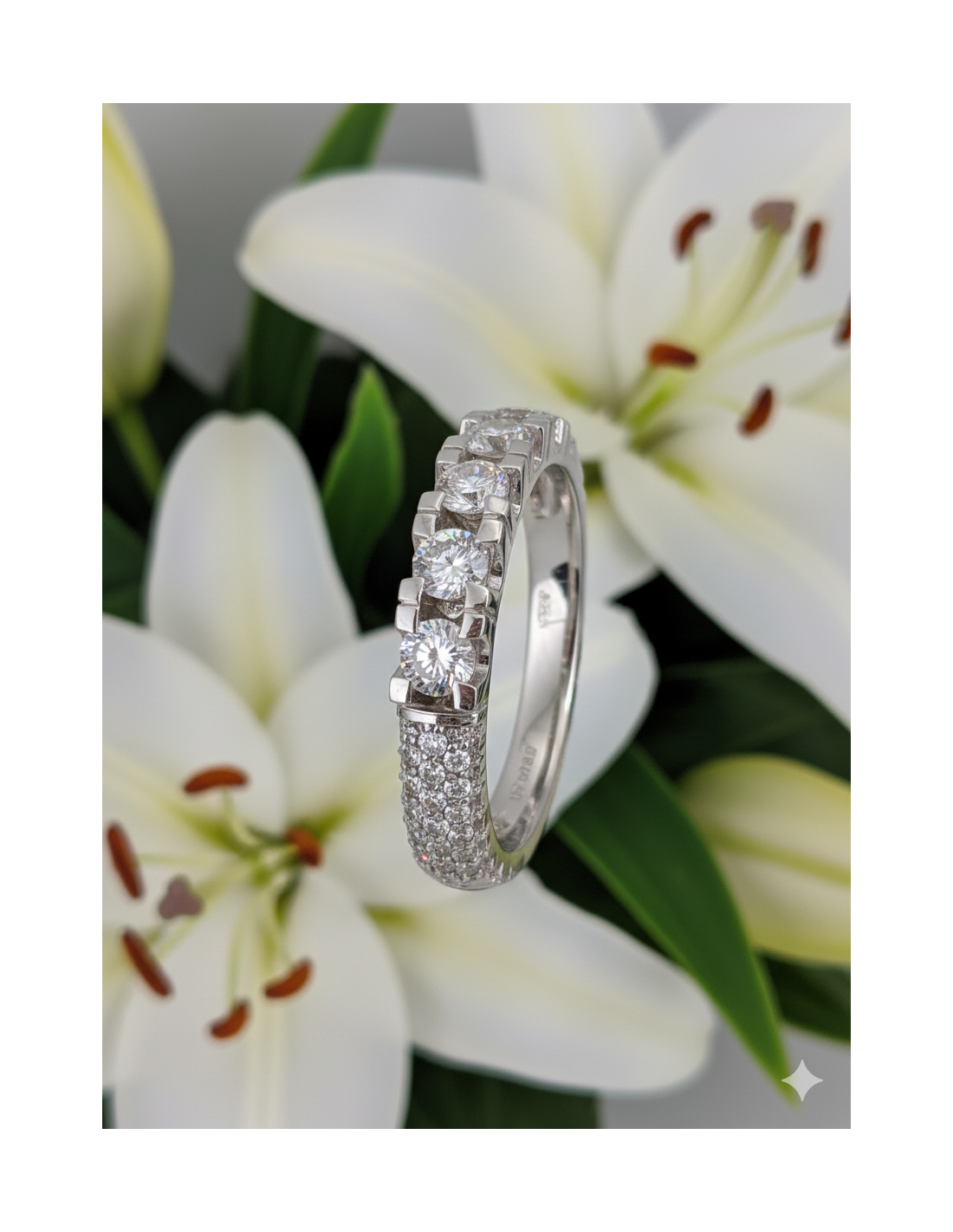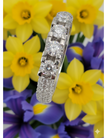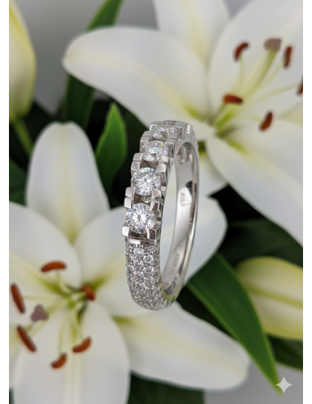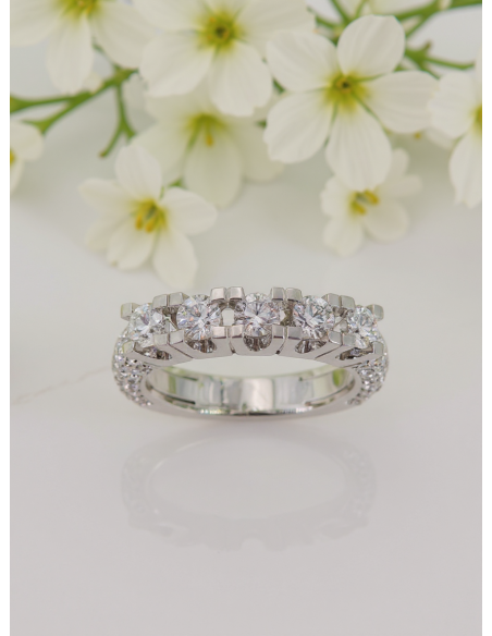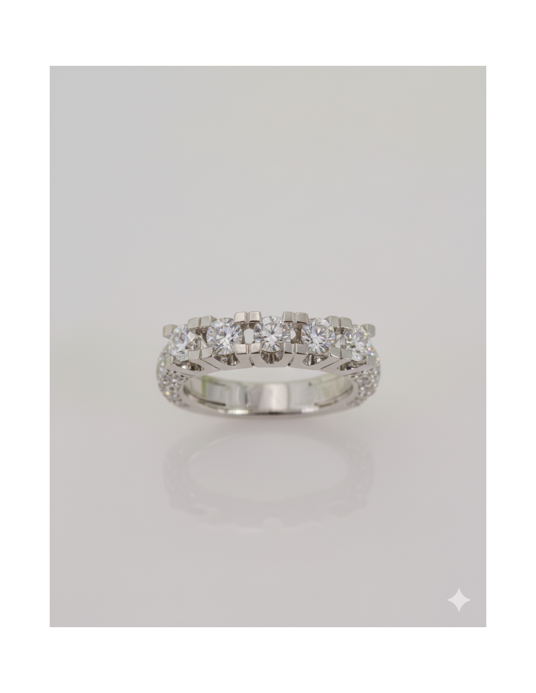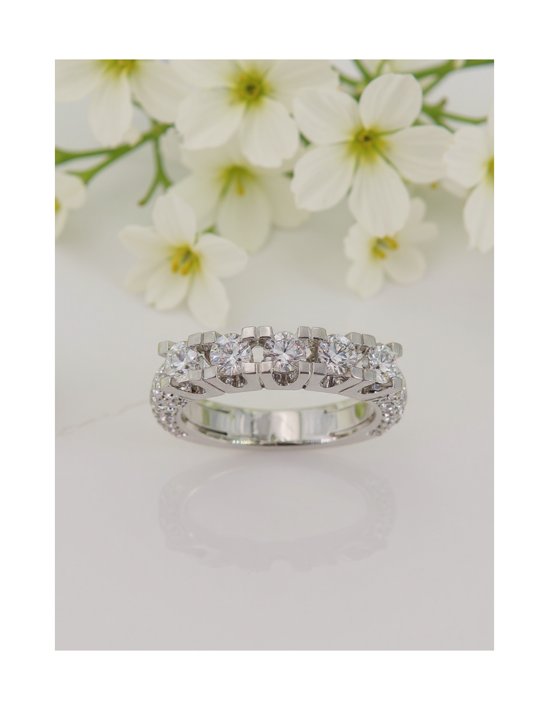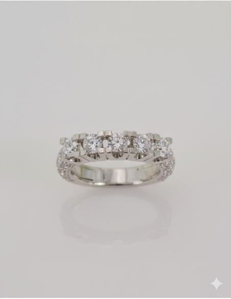 Anello veretta con 5 diamanti e pavè in diamanti sul gambo Aprile Gioielli