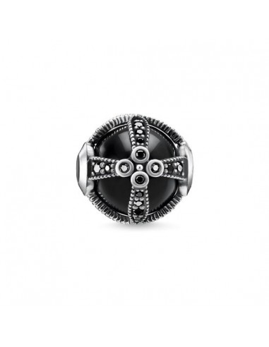 Categoria Bead. Materiale argento sterling 925 niellato. Pietre zircone sintetico nero, onice. Colore argentato, nero. Altezza appross. 1,13 cm (0,44 pollici). Larghezza appross. 1,13 cm (0,44 pollici). Codice articolo K0268-641-11.
