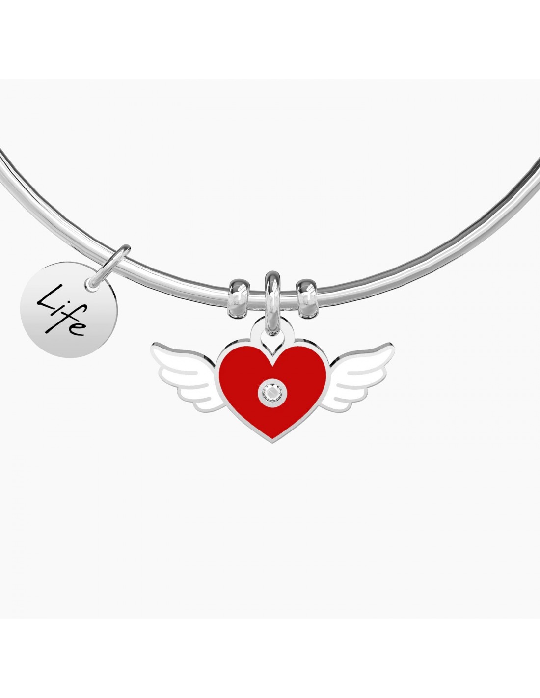 Come un'aquila non pu˜ volare senza aprire le ali, nessun amore pu˜ spiccare il volo senza aprire il suo cuore. Bangle in acciaio con ciondolo a forma di cuore alato smaltato.