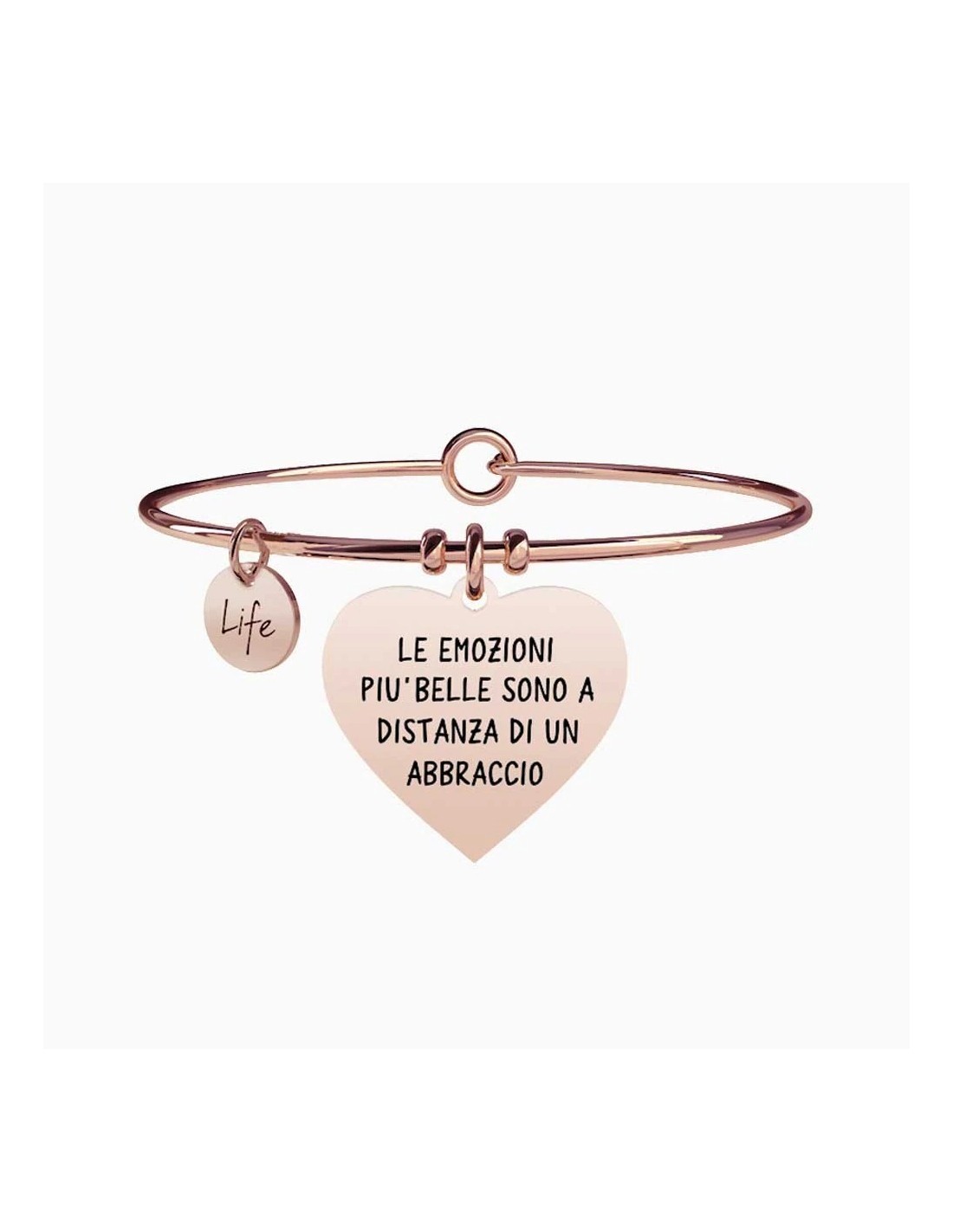Bangle in acciaio color oro rosa con ciondolo Cuore.
