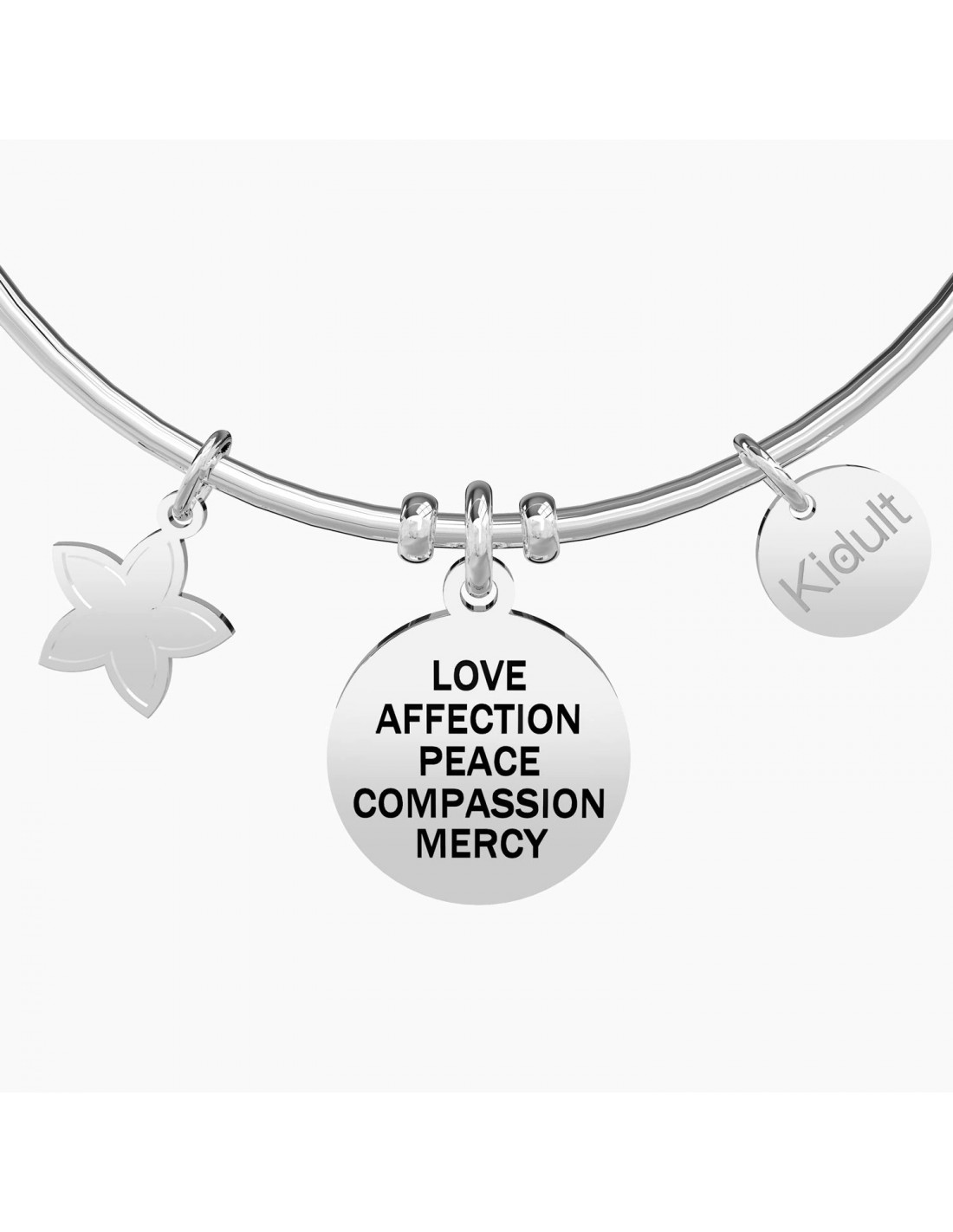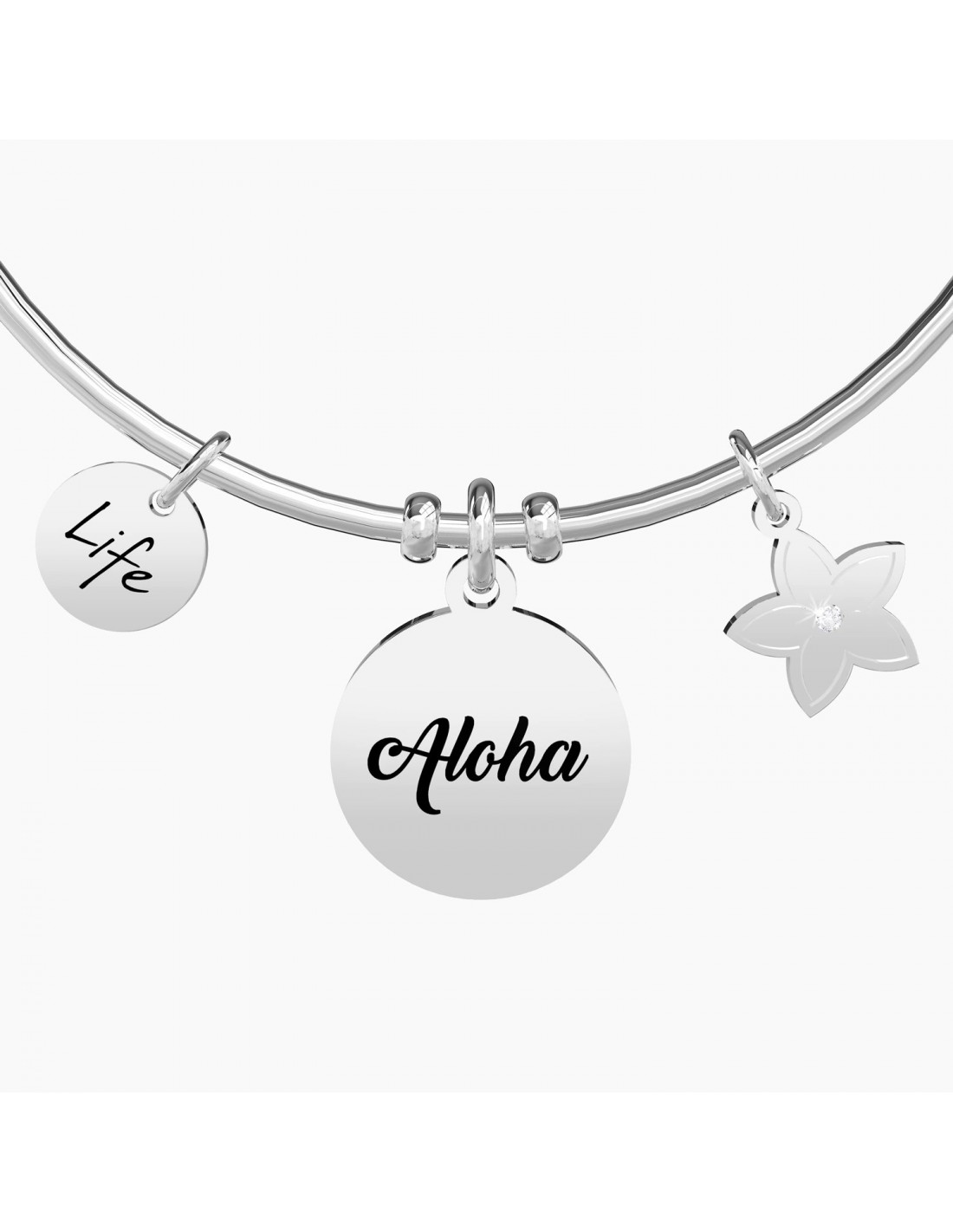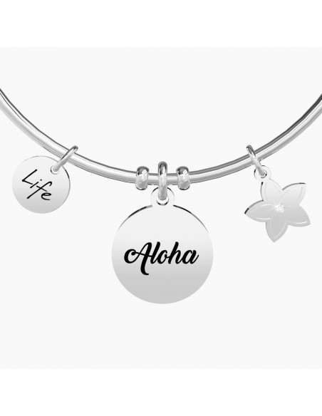 Bangle in acciaio con ciondoli tondo e a fiore.
