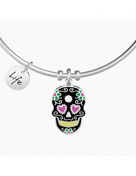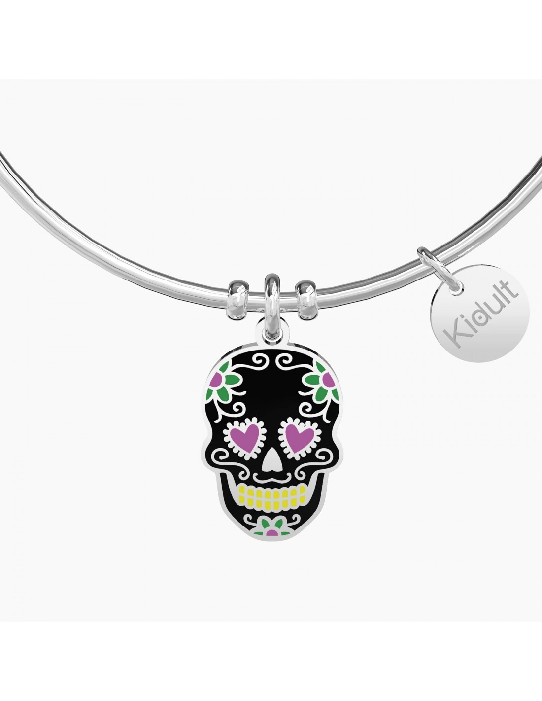 Bangle in acciaio con ciondolo a forma di teschio messicano smaltato.