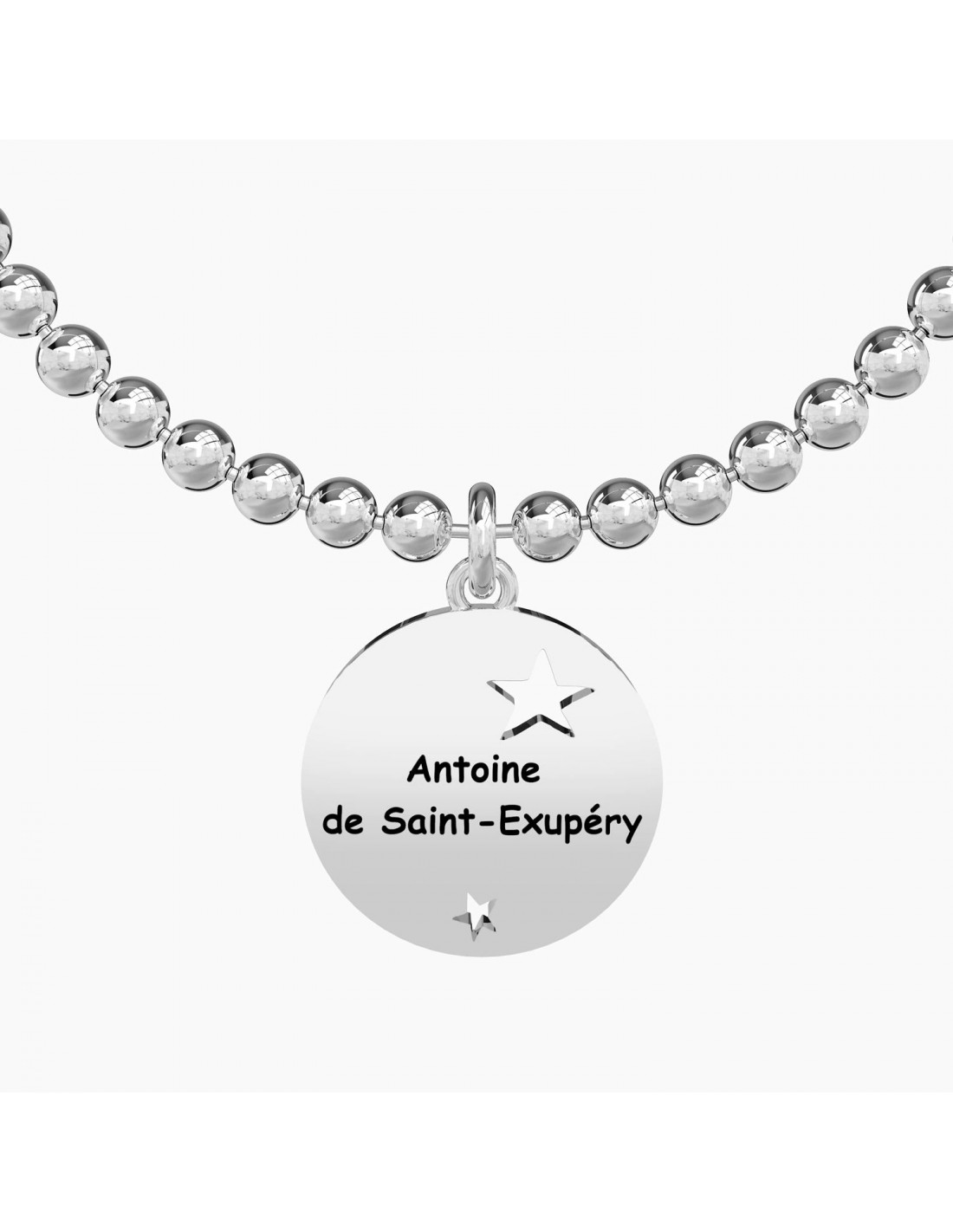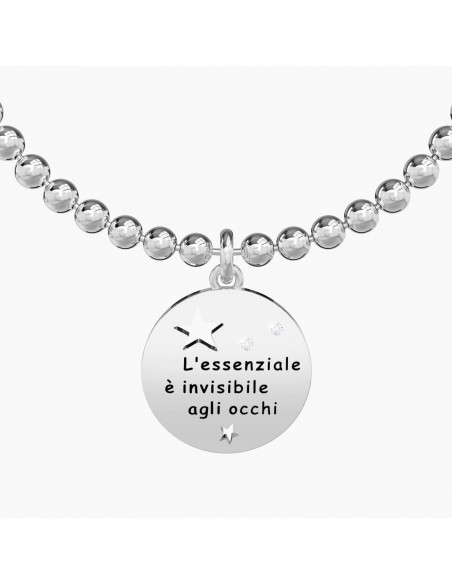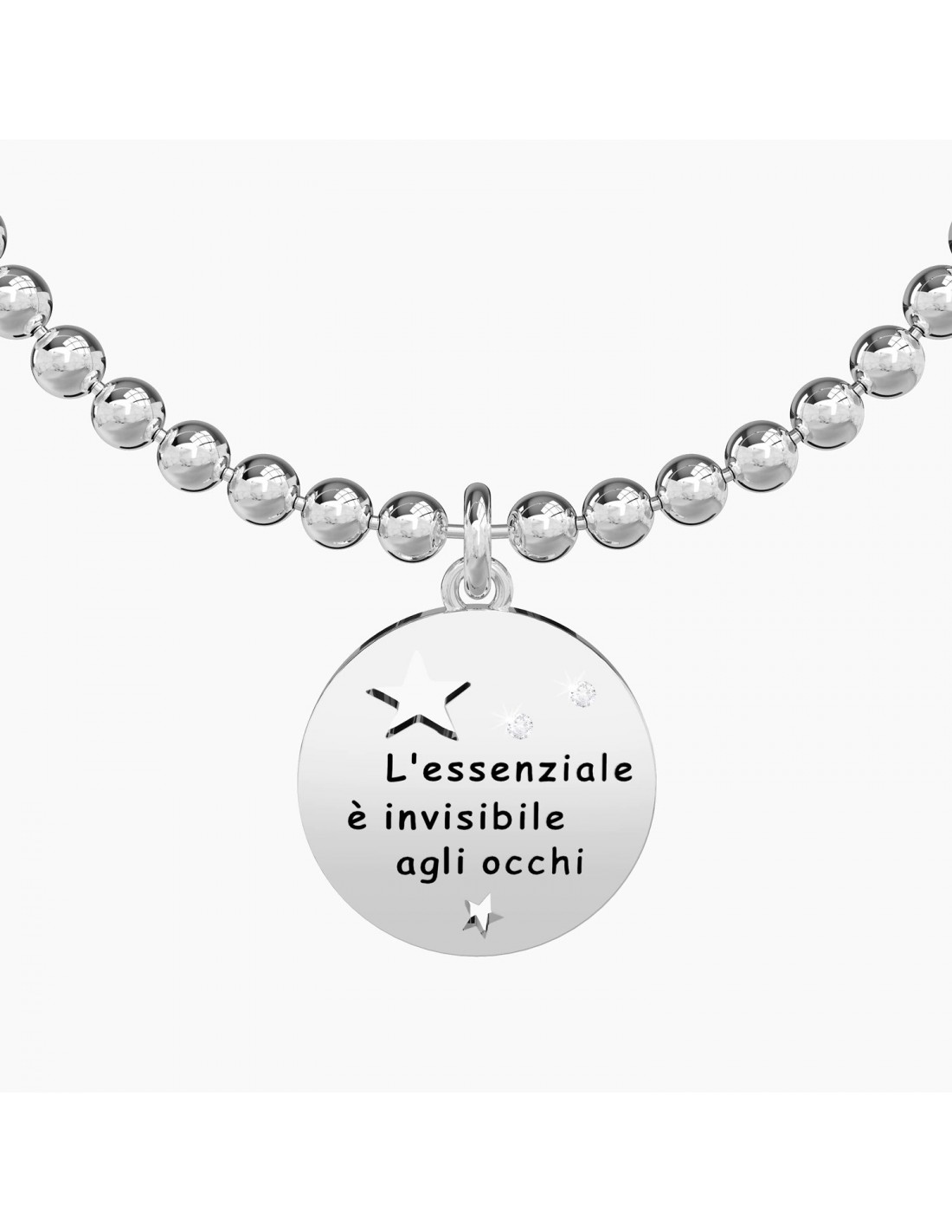 Bangle con filo armonico, sfere in acciaio e ciondolo tondo.