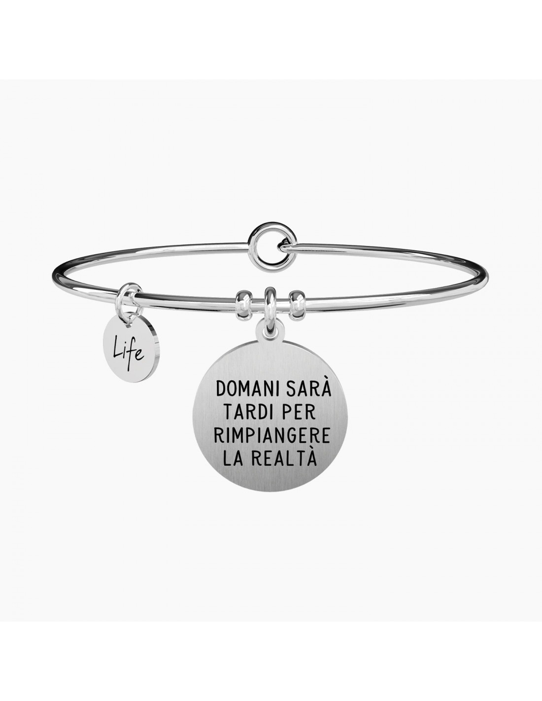 Vasco Rossi Official Collection Domani sarˆ tardi per rimpiangere la realtˆ  meglio viverla Vasco Rossi Bangle in acciaio con ciondolo satinato tondo.