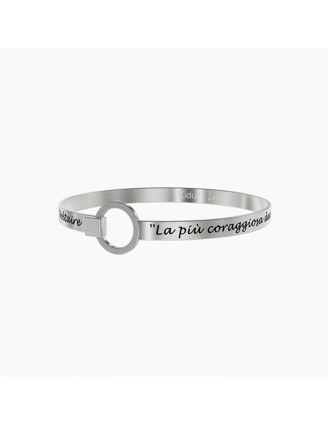 "La pi coraggiosa decisione che prendi ogni giorno  di essere di buon umore". - Voltaire - Bangle in acciaio satinato.