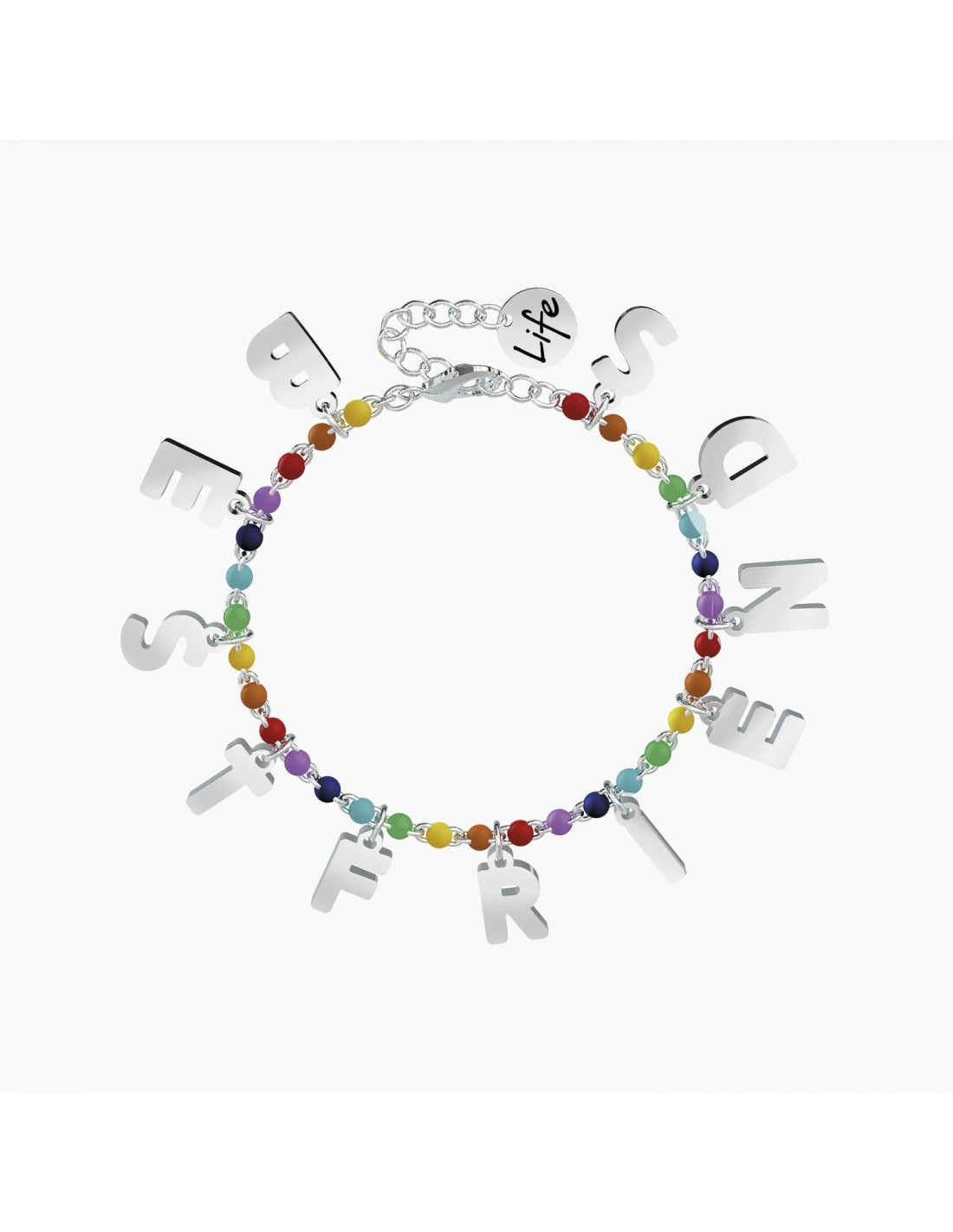 Sai capirmi e ascoltarmi, ma anche sorprendermi e aprirmi gli occhi quando serve. Sei sempre presente e insieme abbiamo la forza per fare ogni cosa. Grazie per essere la mia Migliore Amica! Bracciale in acciaio con ciondoli Best Friends e catena rol˜ con inserimenti in smalto multicolor.