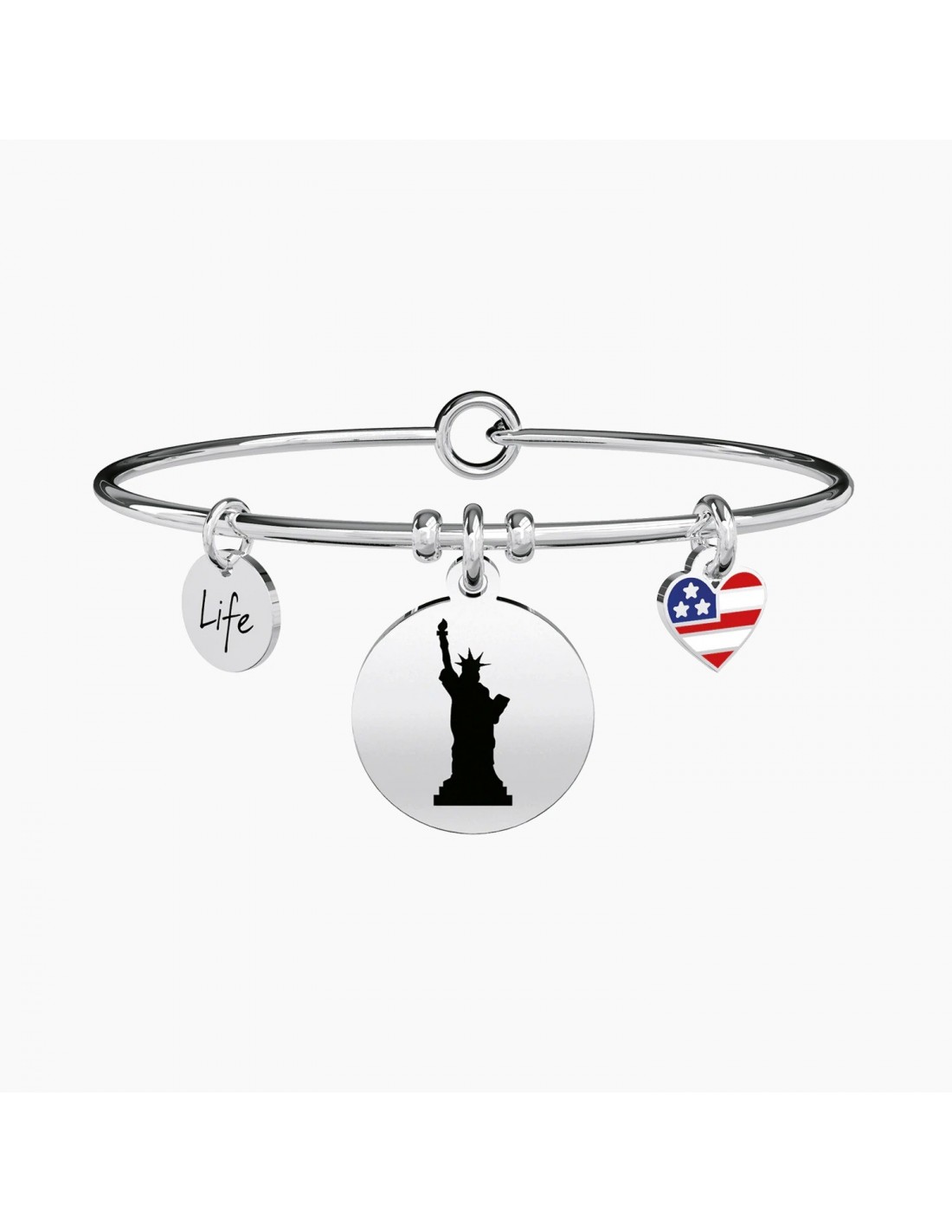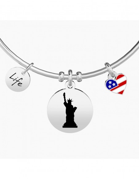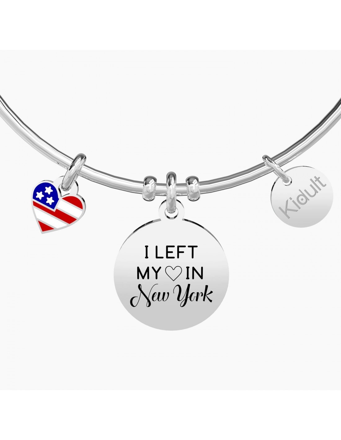 Frenetica, caotica, difficile, eppure cos“ incredibilmente affascinante. New York  la cittˆ dove tutto pu˜ succedere, quella che mi ha fatto innamorare. I left my heart in New York Bangle in acciaio con ciondoli tondo e piccolo cuore.
