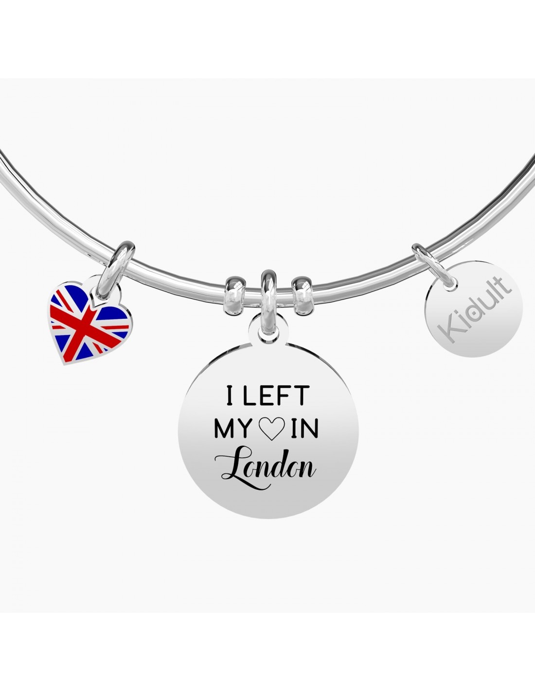 Le luci sul Tamigi, il profumo di Covent Garden, la vista sulla London Eye, l'allegria di Camden Town. Londra sarˆ sempre nel mio cuore. I left my heart in London Bangle in acciaio con ciondoli tondo e piccolo cuore.