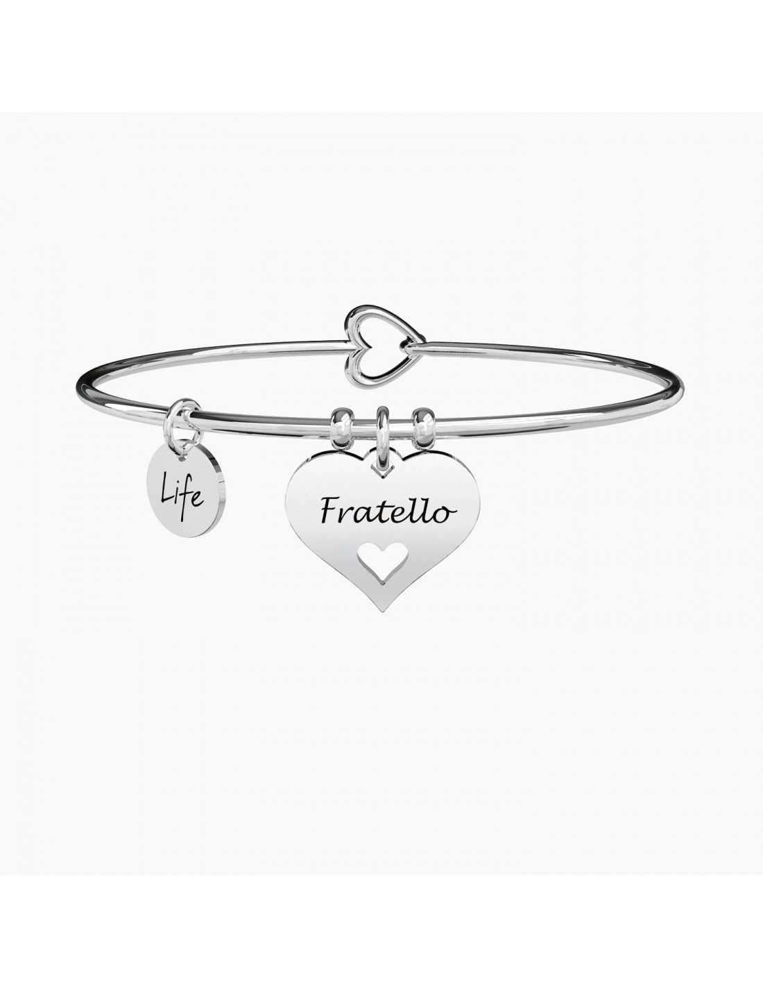 Finch ci sei tu al mio fianco, io non mi sentir mai sola. Fratello Bangle in acciaio con ciondolo a cuore.