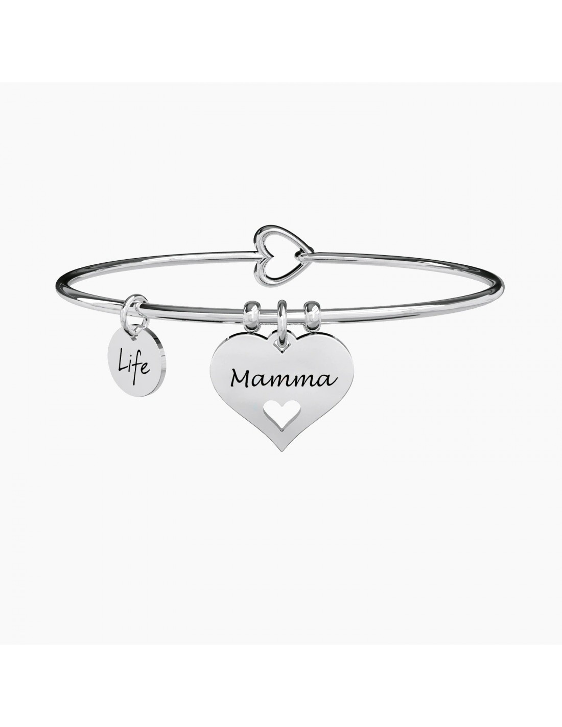 Bangle in acciaio con ciondolo a cuore.