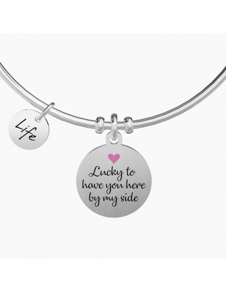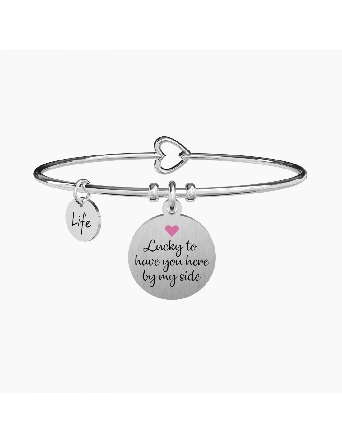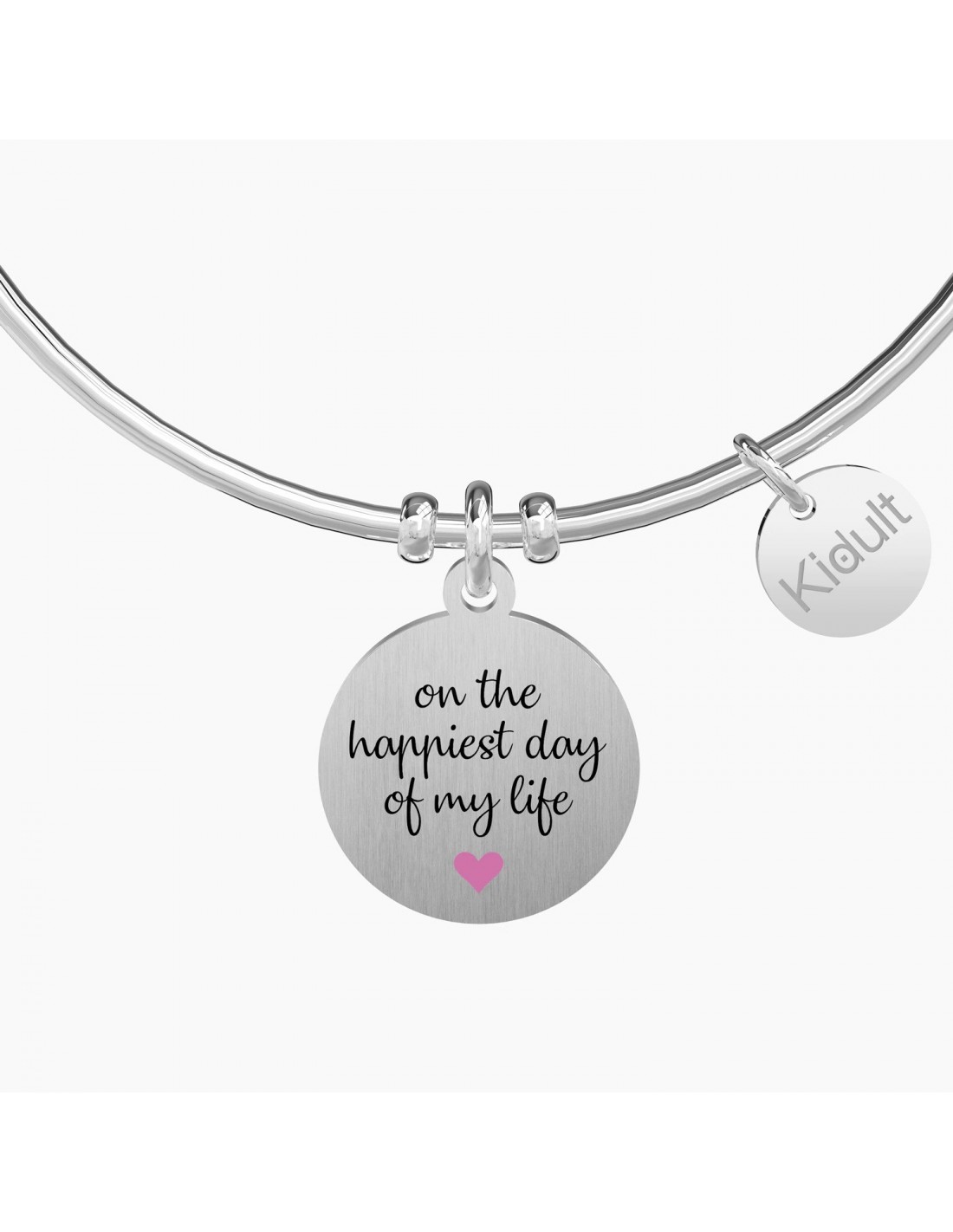 Bangle in acciaio con ciondolo satinato tondo.