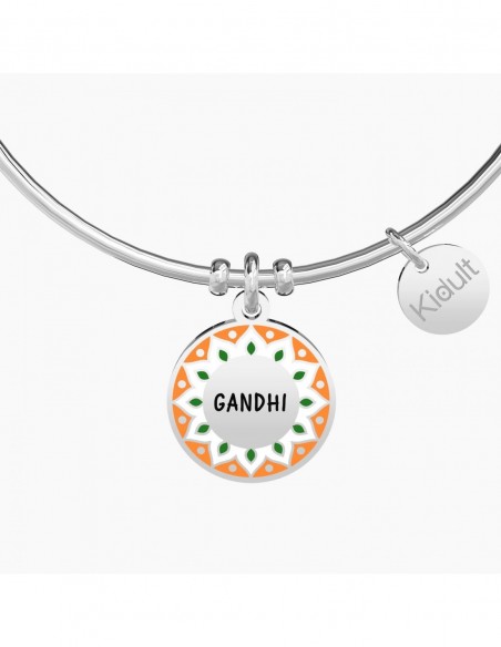 Gandhi Official Collection "Be the change you wish to see in the world." Ê- Gandhi - Bangle in acciaio con ciondolo tondo con disegno simil mandala sul retro.