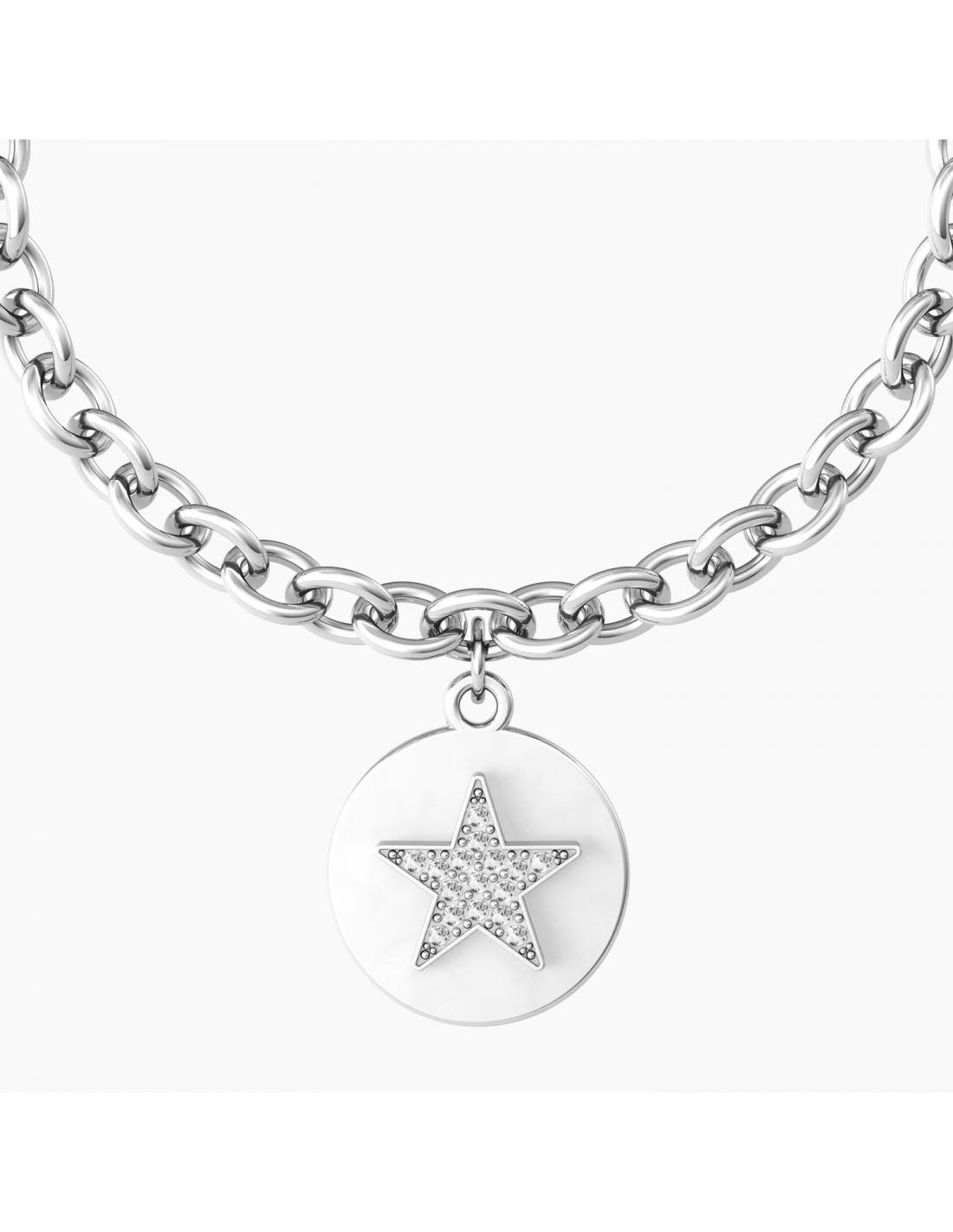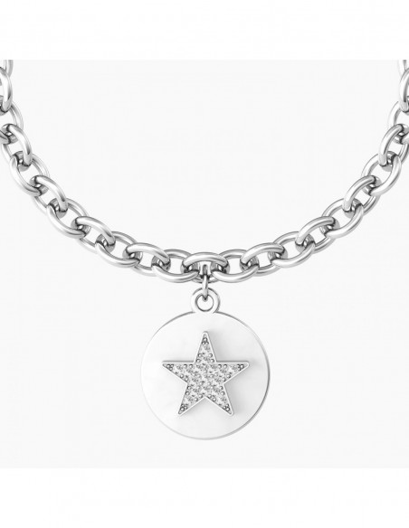 Sei una mano tesa, una preziosa consigliera, una spalla su cui piangere e una complice con cui ridere. Grazie per esserci sempre amica mia. Bracciale in acciaio con catena groumette "comfort fit" e ciondolo lucido tondo con stella in cristalli.