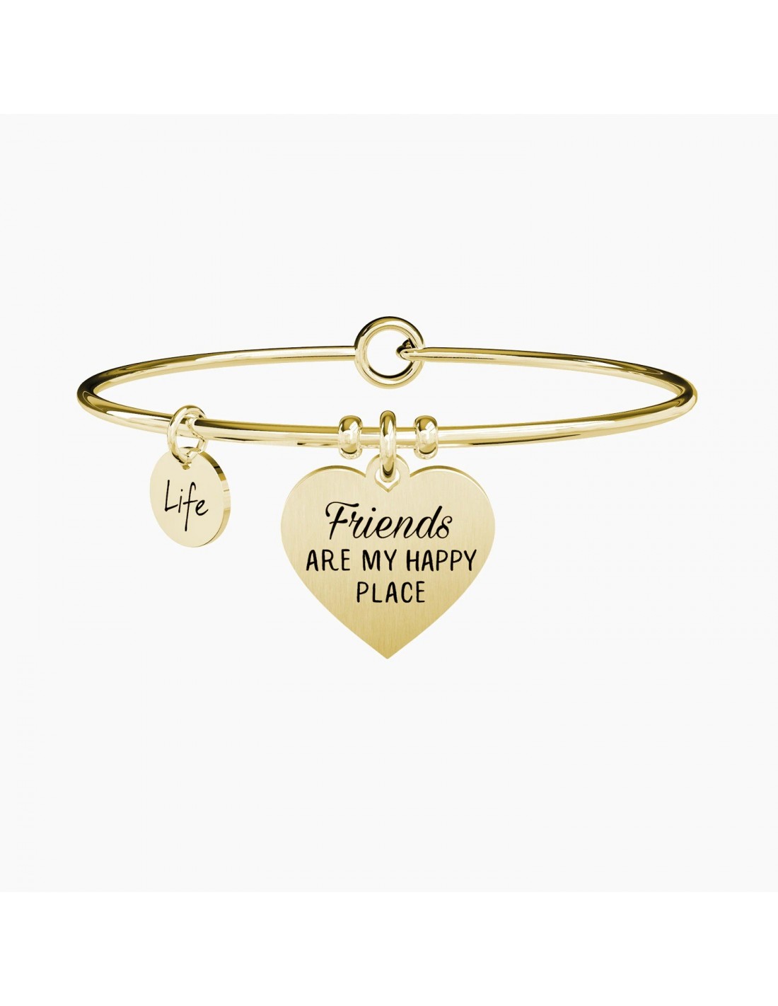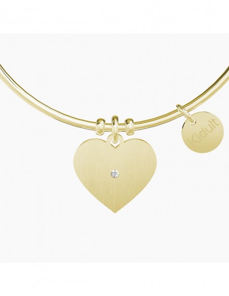 Bangle in acciaio color oro giallo con ciondolo satinato a cuore.