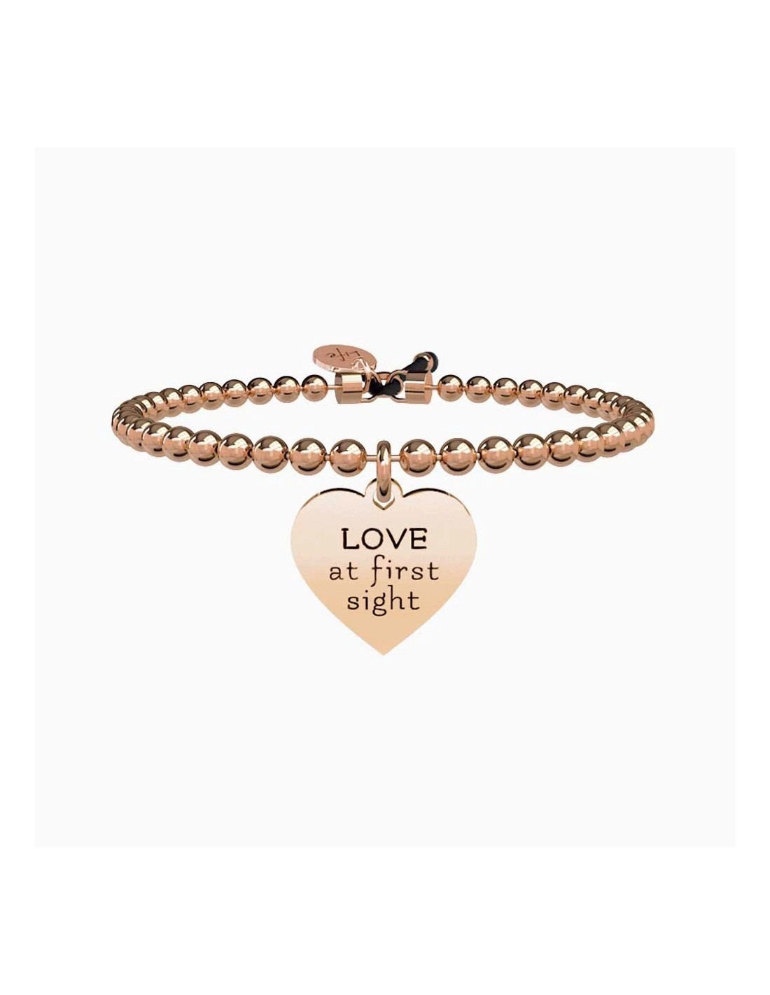 Bangle con filo armonico, sfere in acciaio color oro rosa e ciondolo Cuore.