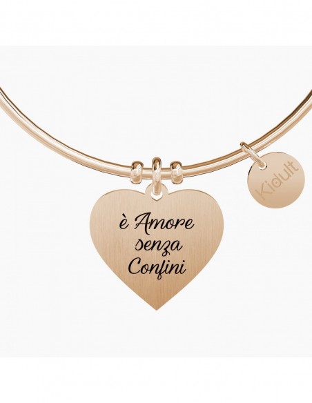 Bangle in acciaio color oro rosa con ciondolo satinato a cuore.