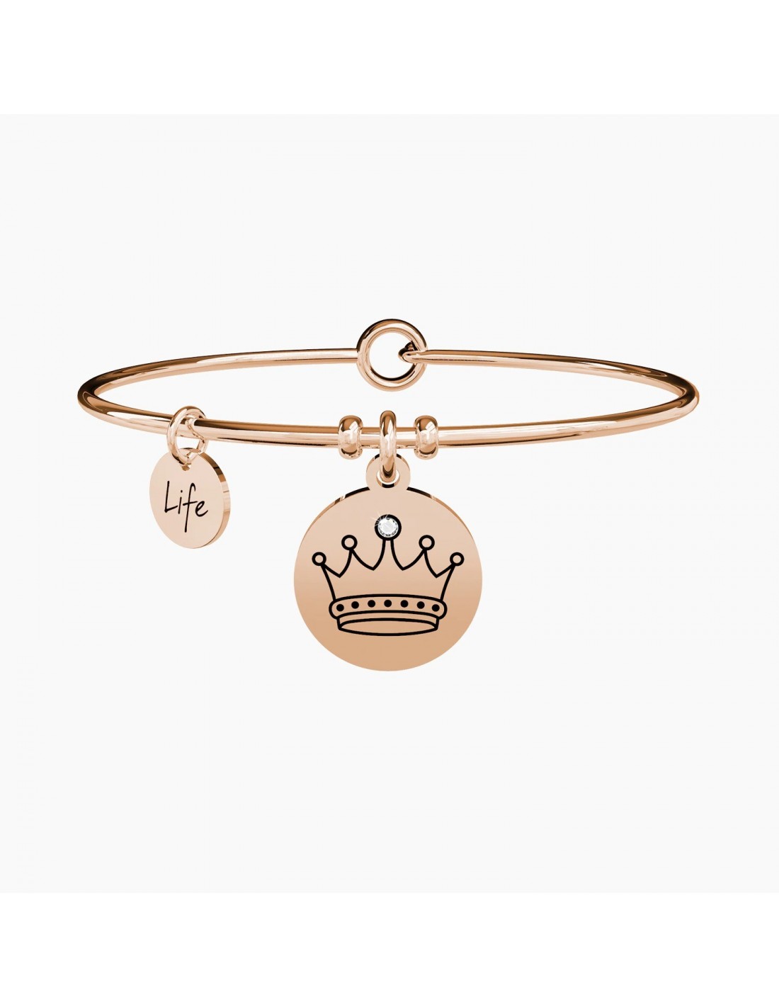 Bangle in acciaio color oro rosa con ciondolo tondo.