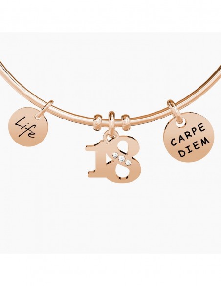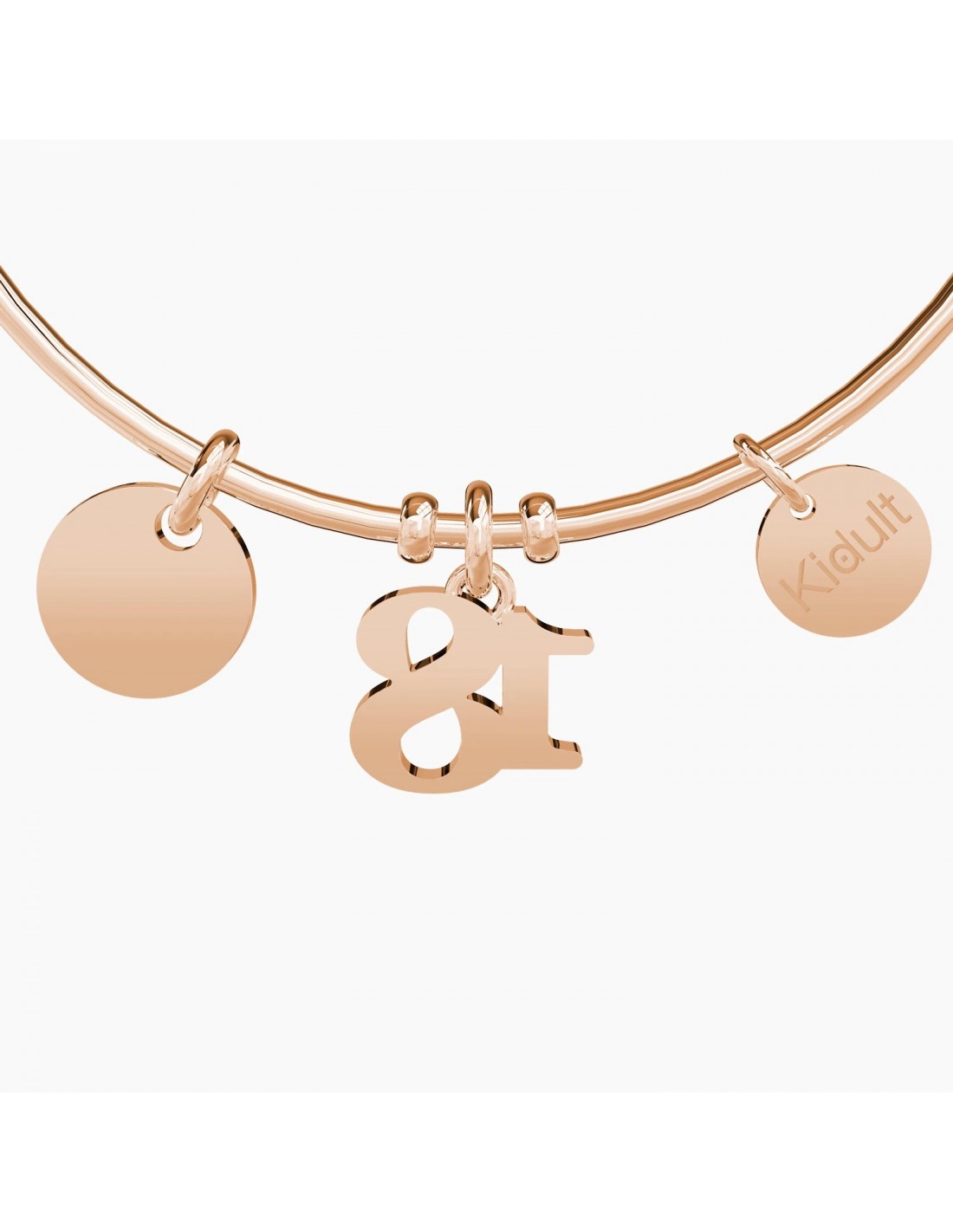 Bangle in acciaio color oro rosa con ciondoli 18¡ e piastra tonda.