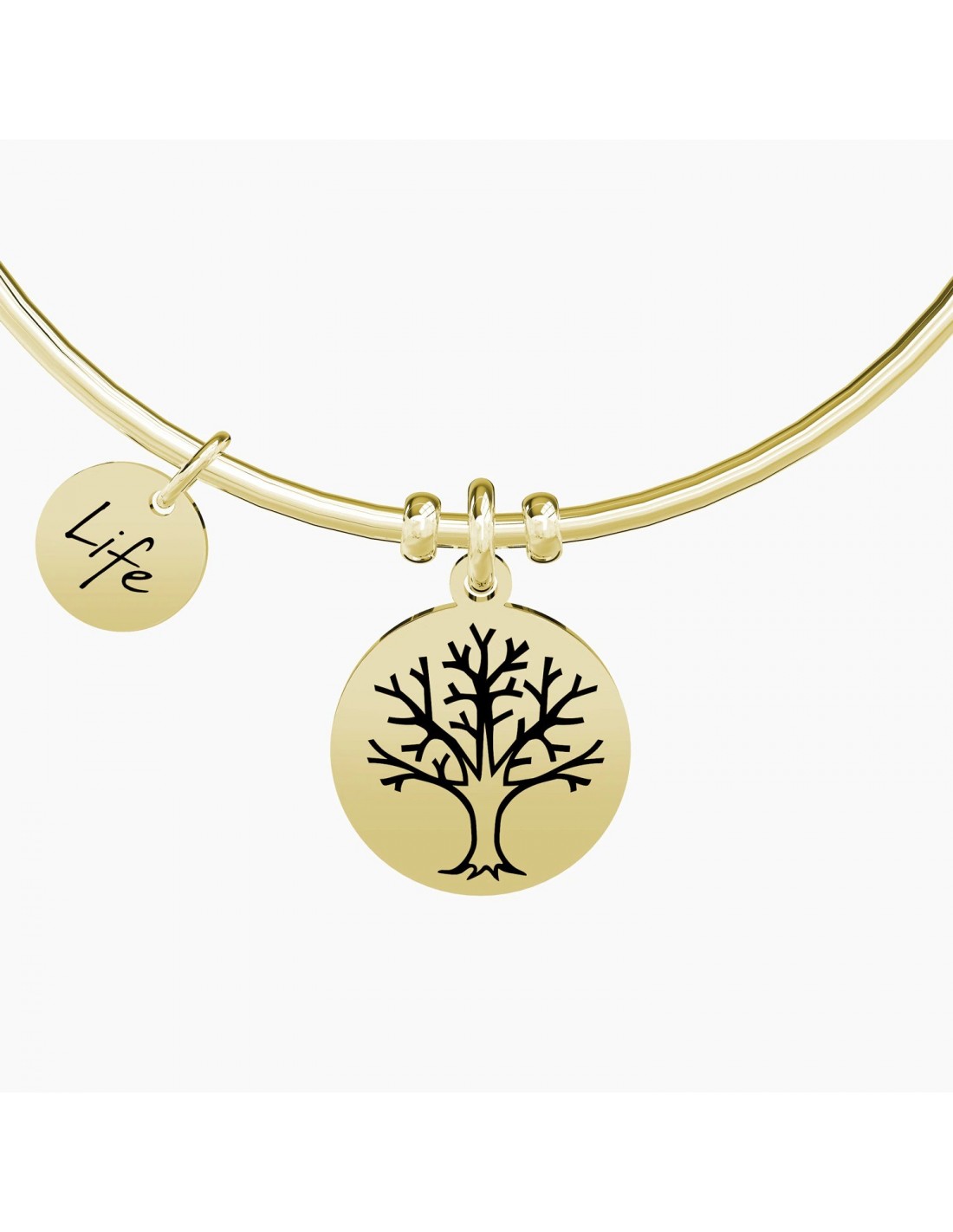 Bangle in acciaio color oro giallo con ciondolo Albero della Vita.