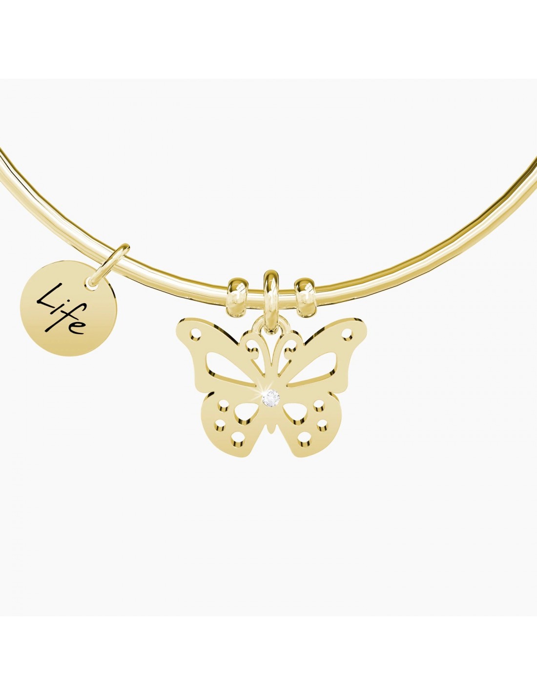 Bangle in acciaio color oro giallo con ciondolo Farfalla.