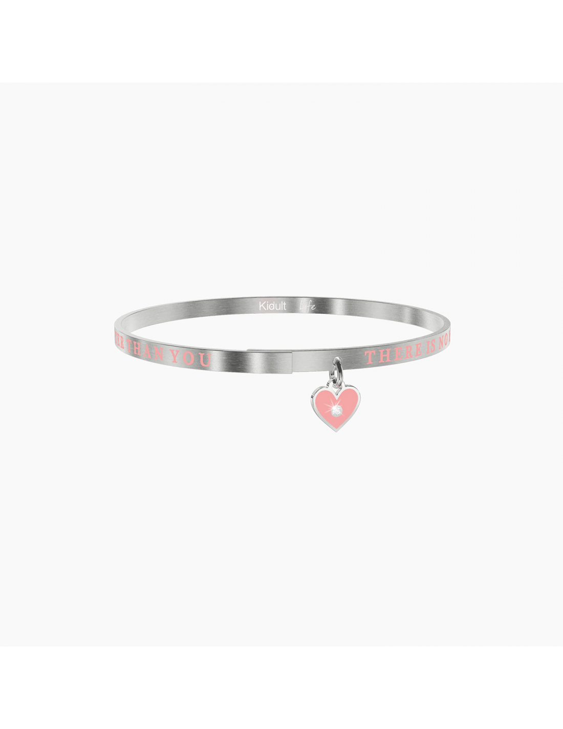 There is no better friend than a sister There is no better sister than you Bangle sottile in acciaio satinato con scritta e piccolo ciondolo a cuore smaltato rosa.