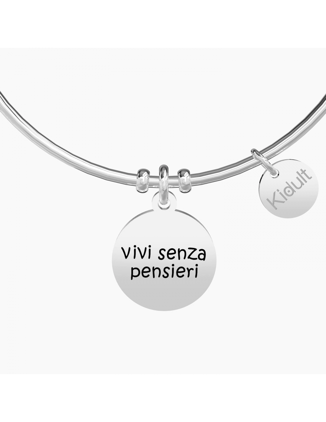 La mente libera, lo sguardo sereno, il cuore felice. Abbraccia la vita cos“ come viene e vivi senza pensieri! Bangle in acciaio con ciondolo satinato tondo.
