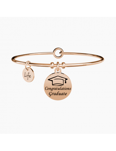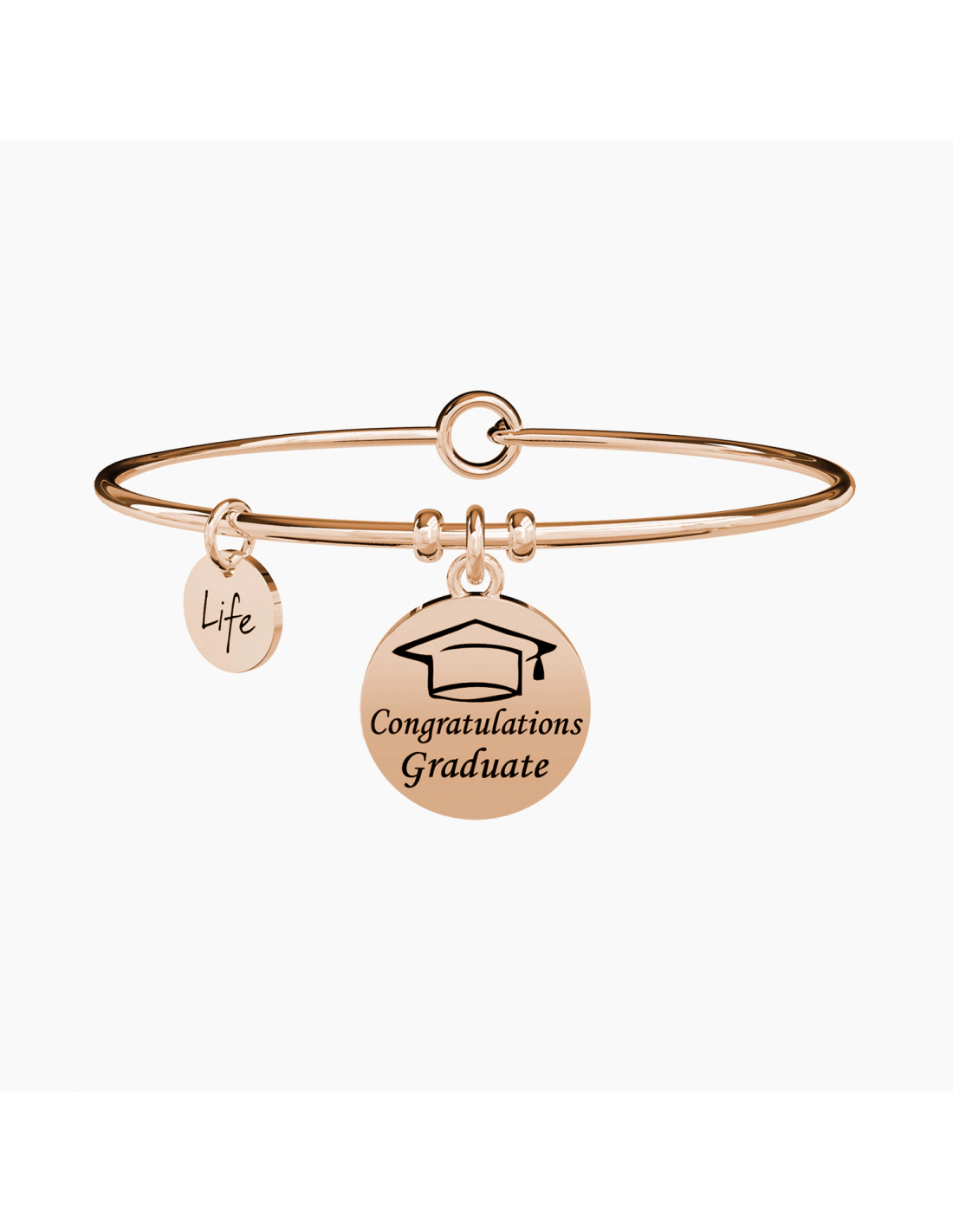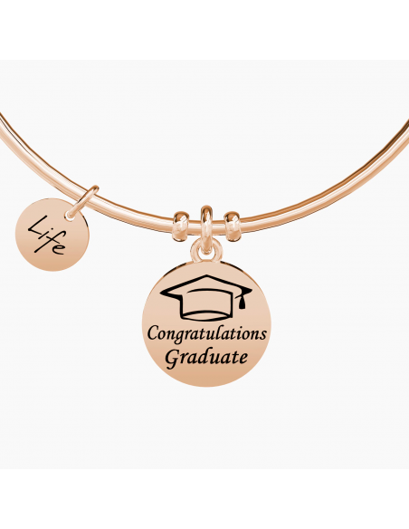 Bangle in acciaio color oro rosa con ciondolo Laurea.