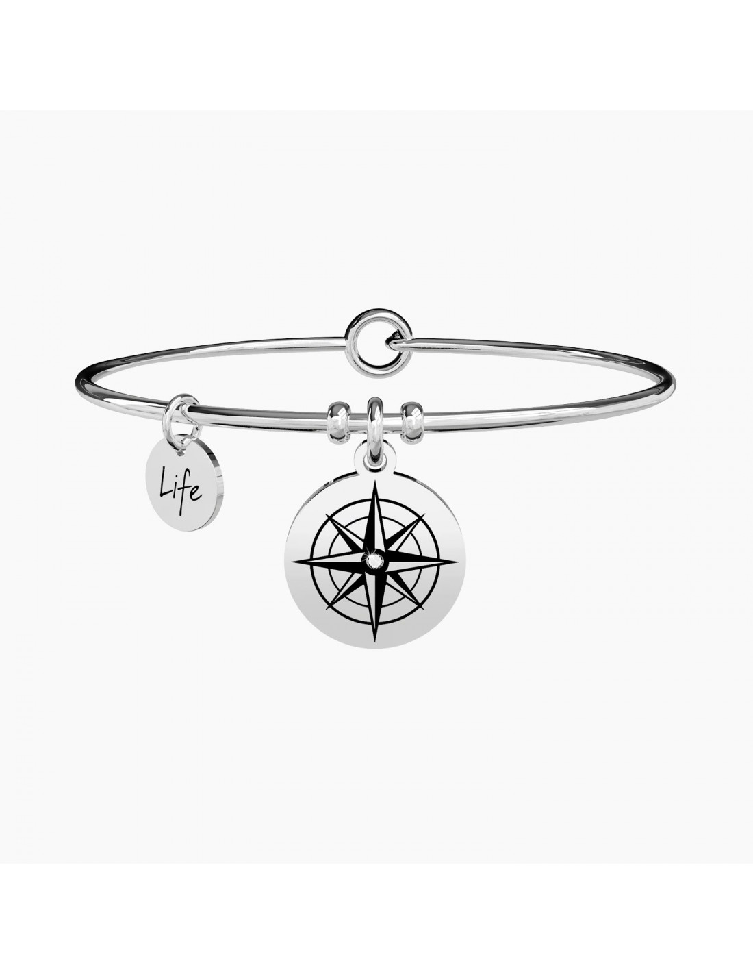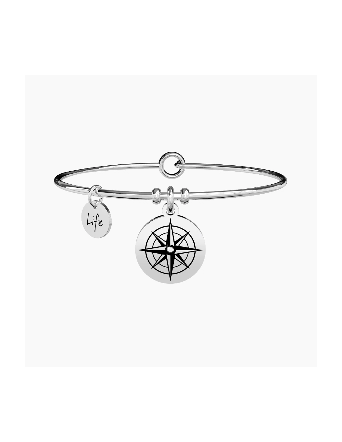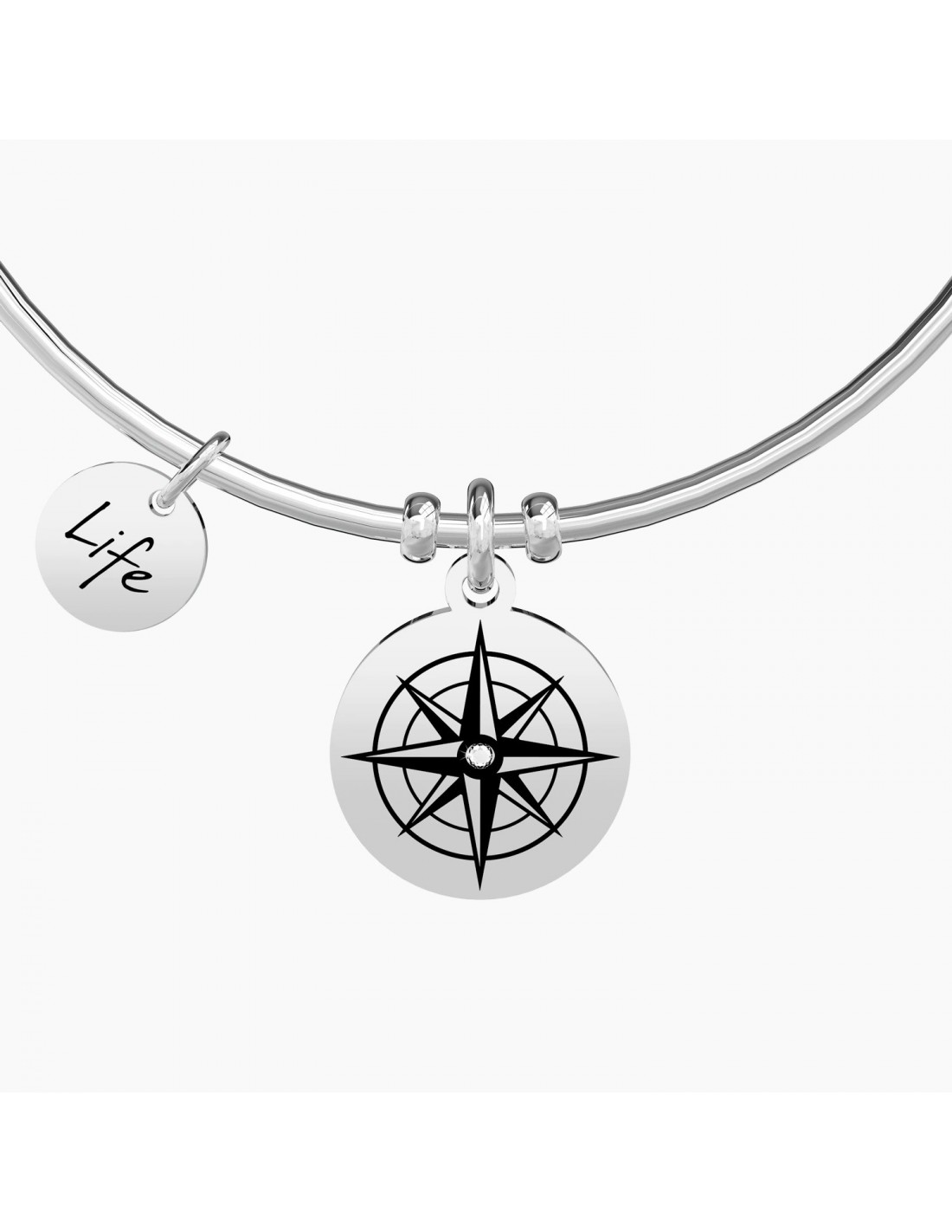 Nord, sud, ovest, est. La vita  una vela gonfiata dal vento. Anche in un mare agitato dal caso e dagli eventi, sei sempre tu a scegliere la rotta, artefice del tuo futuro. Bangle in acciaio con ciondolo tondo.