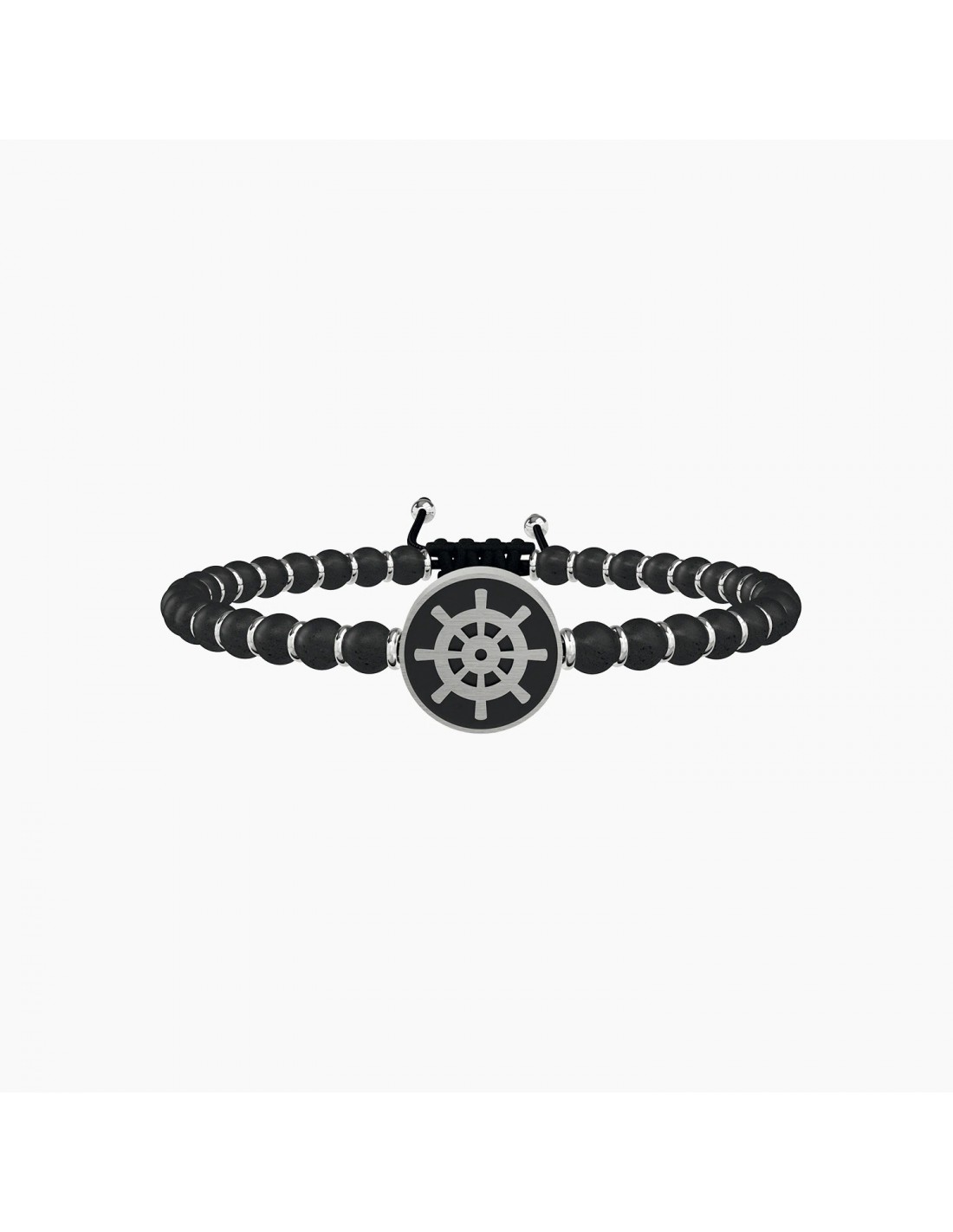 In mezzo alla tempesta c' un solo uomo al comando, l'ultimo ad abbandonare la nave. Bracciale con sfere in onice e piastra tonda Timone in acciaio di colore nero.