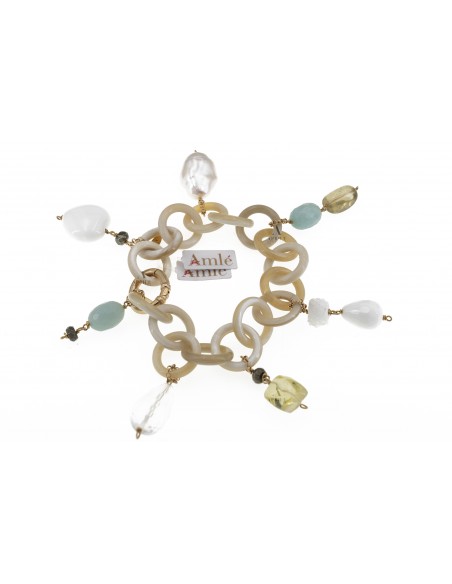 Bracciale prodotto da Amlè in corno e pietre naturali