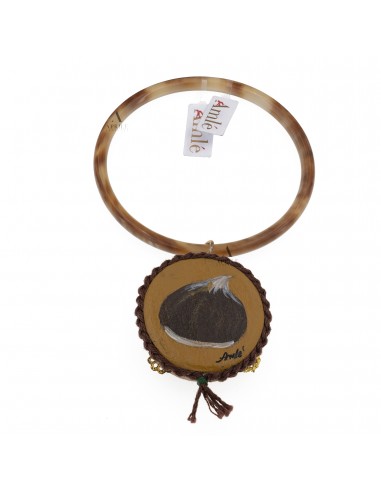 Bracciale prodotto da Amlè in corno e tamburello dipionto ma mano