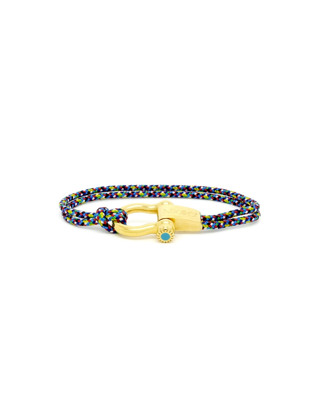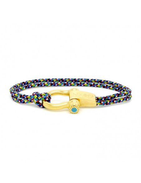Bracciale nautico in acciaio e corda nautica. Grillo nautico in tonalità oro brillante e corda nautica Arlequin originale per dare un uno stile contemporaneo, adatto ad ogni outfit maschile distintivo. Grillo arrotondato perfettamente liscio e lucido. Iconica chiusura Sail-O®, dove gli intagli fatti a mano ricordano la bussola e abbracciano metaforicamente il mare, rappresentato dalla punta di colore turchese smaltato. Il logo Sail-O® finemente inciso aggiunge un tocco distintivo e riconoscibile.