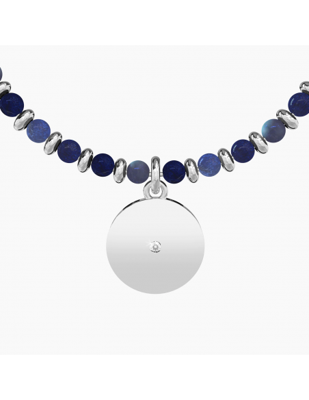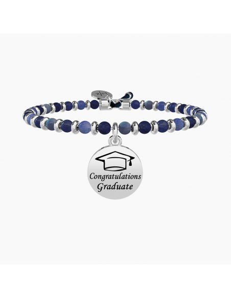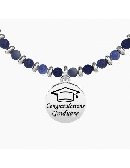 Bangle con filo armonico in acciaio, sfere in sodalite e ciondolo Laurea.