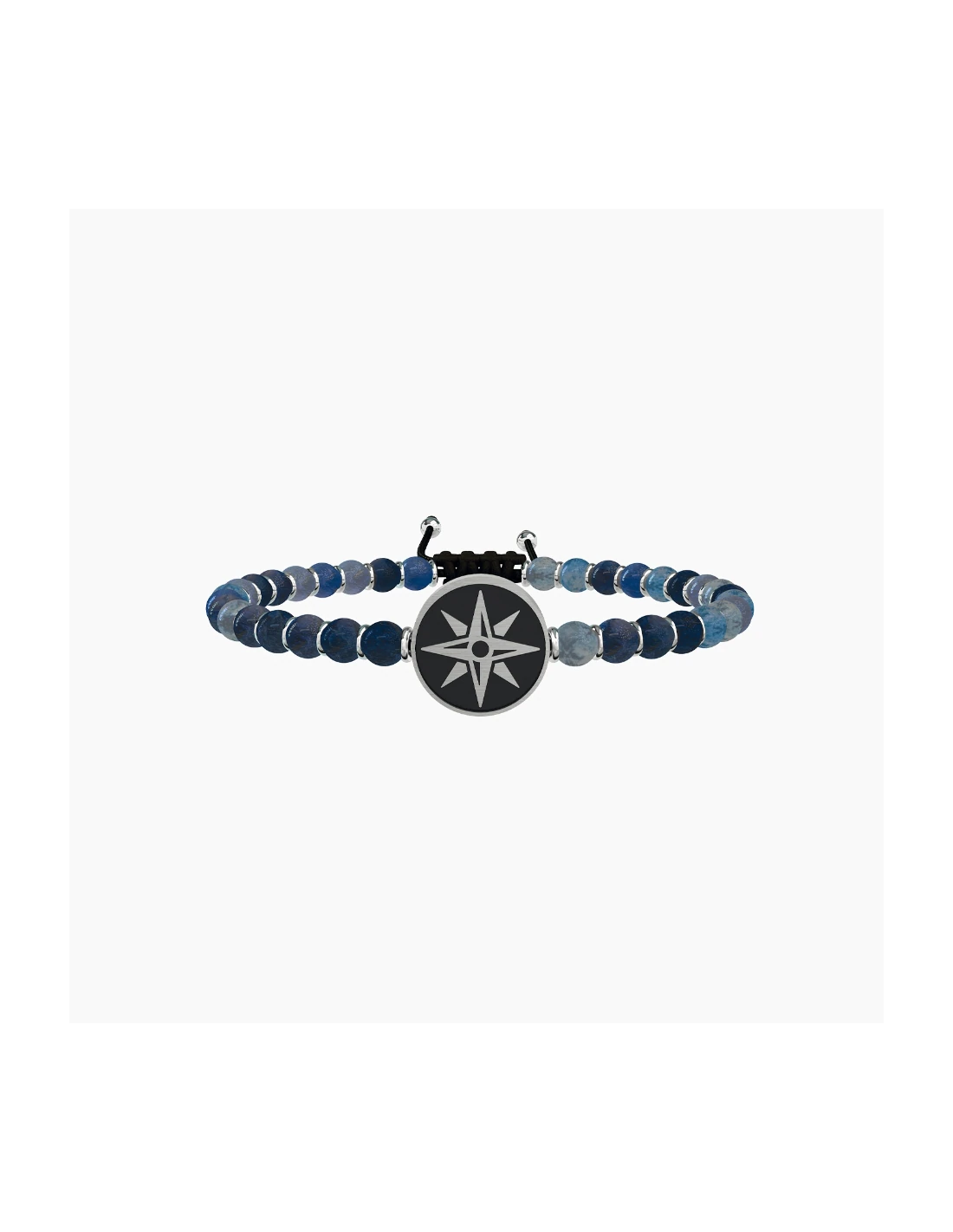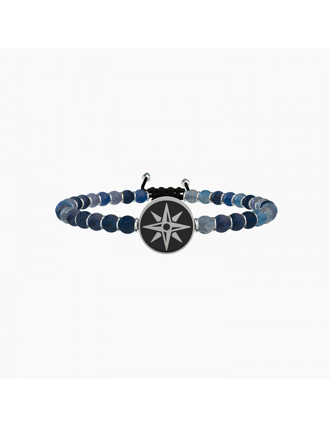 Hai il coraggio di chi salpa verso l'orizzonte, spingendosi al di lˆ dei propri conÞni. La forza del vento gonÞerˆ le tue vele. Bracciale con sfere in sodalite e piastra tonda Rosa dei Venti in acciaio di colore nero.
