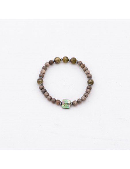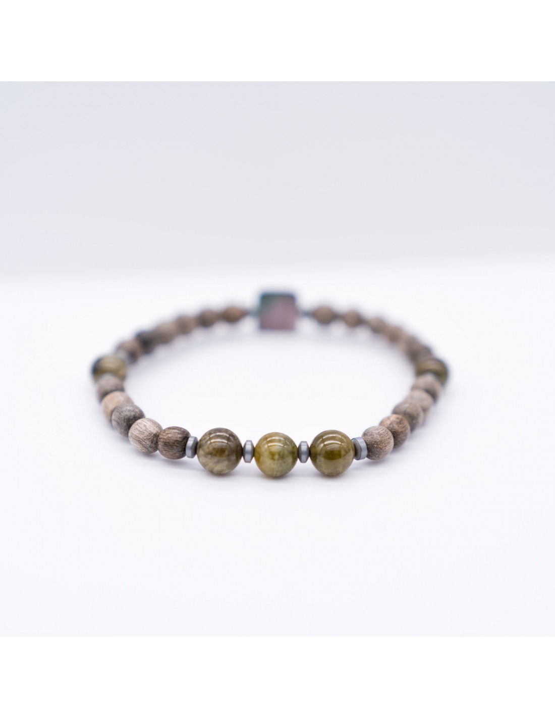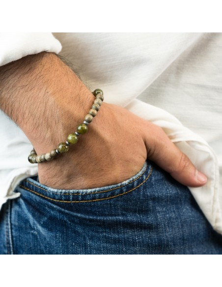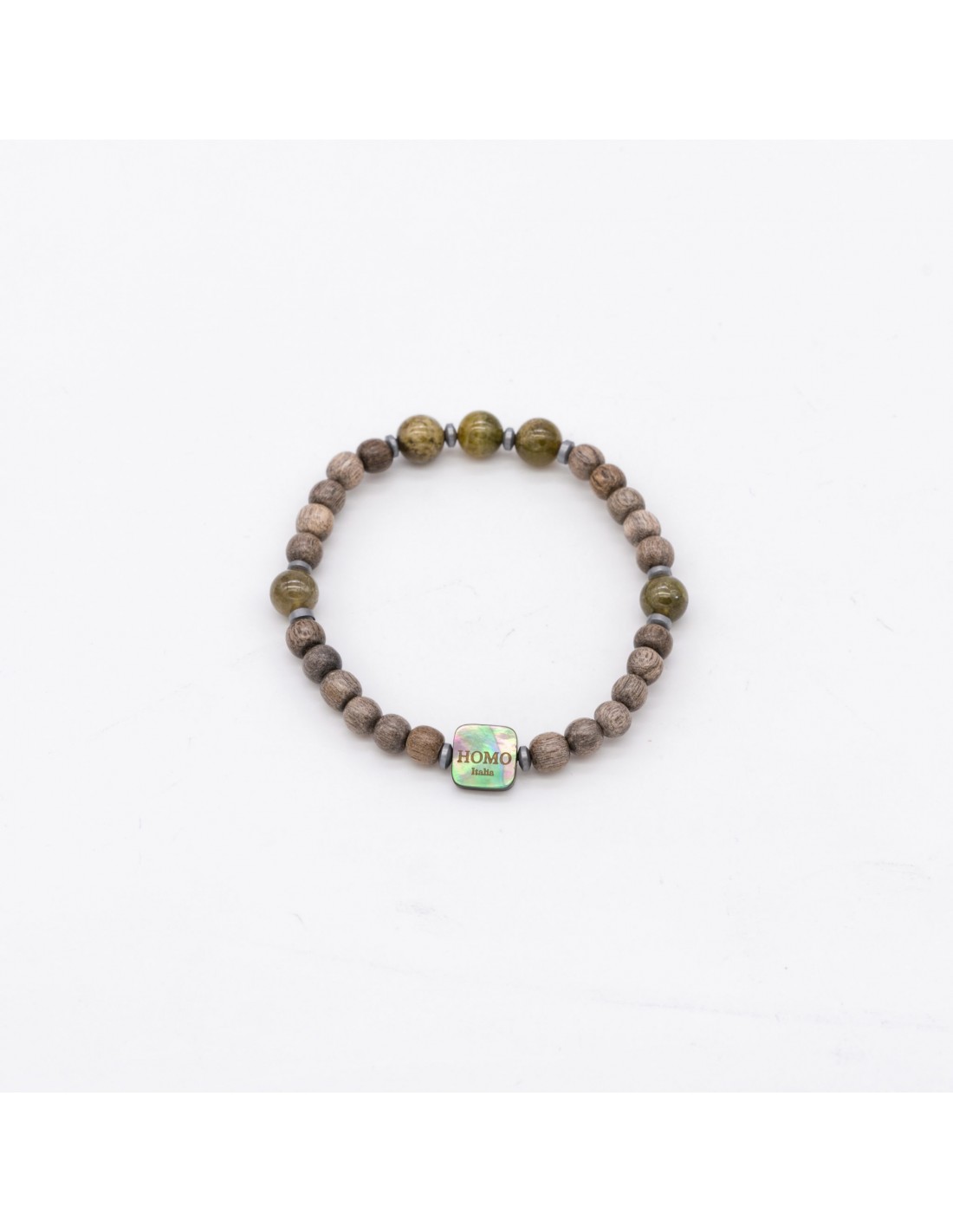 Bracciale Uomo Granato Verde, Ematite E Legno Homo Travel