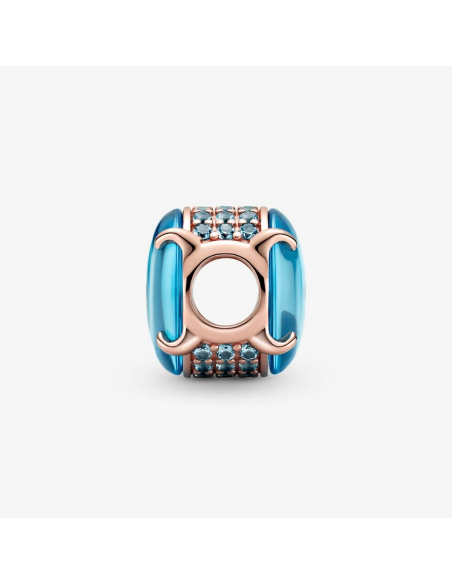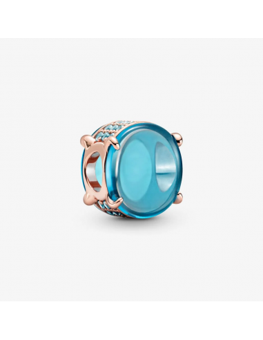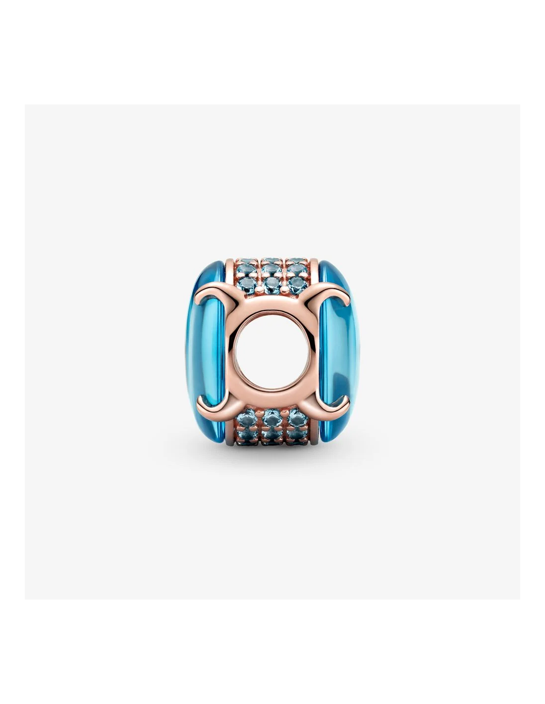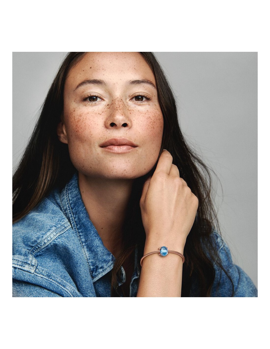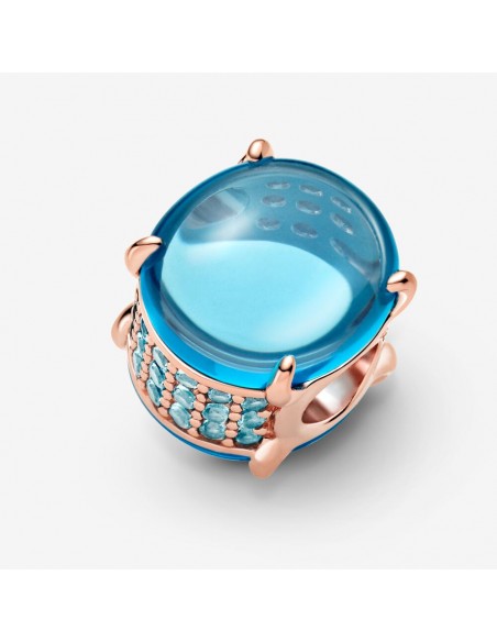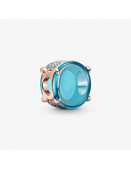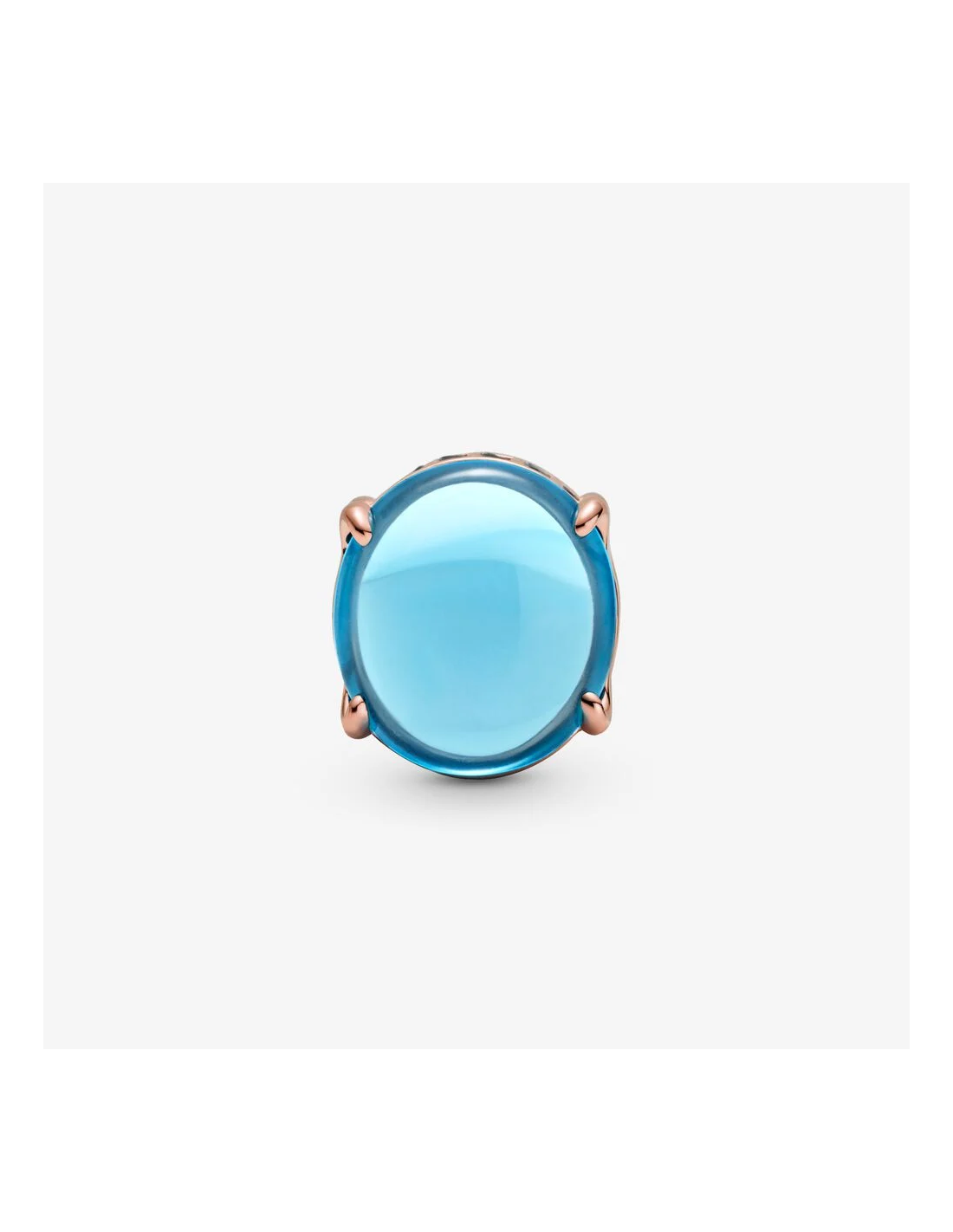 Dimostra il tuo amore per i colori con il charm con pietra cabochon ovale blu. Rifinito a mano e realizzato in Pandora Rose (la nostra esclusiva lega metallica con placcatura in Oro rosa 14K), il charm presenta due pietre con taglio cabochon ovale che creano un charm trasparente.