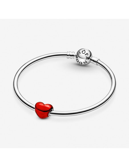 Punta sullo stile pop con questo charm Cuore rosso metallico. Rifinito a mano e realizzato in Argento Sterling 925, il gioiello a forma di cuore è decorato da smalto rosso trasparente applicato a mano che lascia trasparire la base. Perfettamente bilanciato tra finitura opaca e lucida, questo charm riflette la luce e risalta al meglio sul tuo bracciale Pandora Moments abbinato a charm minimalisti. In alternativa, indossalo con altri gioielli colorati per un look vivace e scenografico.