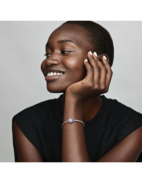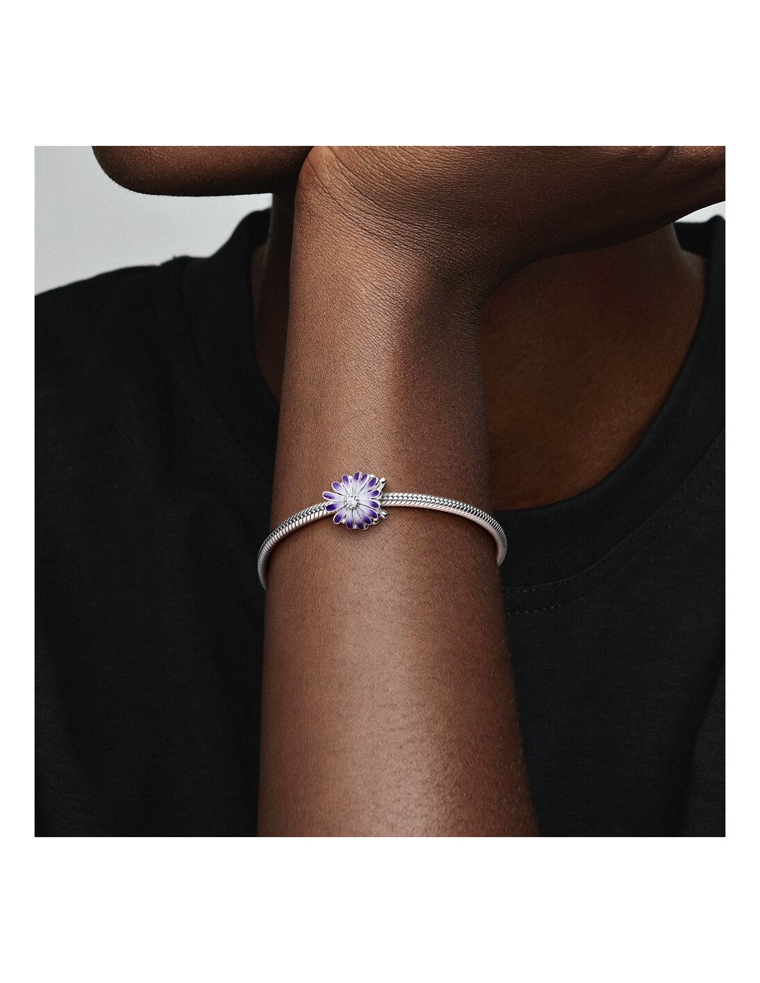 Indossa un fiore che durerà per sempre con il charm Margherita viola. Il gioiello floreale presenta due margherite di forma convessa decorate al centro da scintillanti pietre di zirconia cubica incolori, circondate da micro-sfere e petali dipinti da smalto bianco, viola e color lavanda sfumato e applicato a mano. Ispirato all’idea che ogni fiore è unico, il charm in Argento Sterling 925 rappresenta la primavera, la diversità e il senso di comunità. Indossalo per rendere più gioioso ogni giorno, outfit e occasione.
