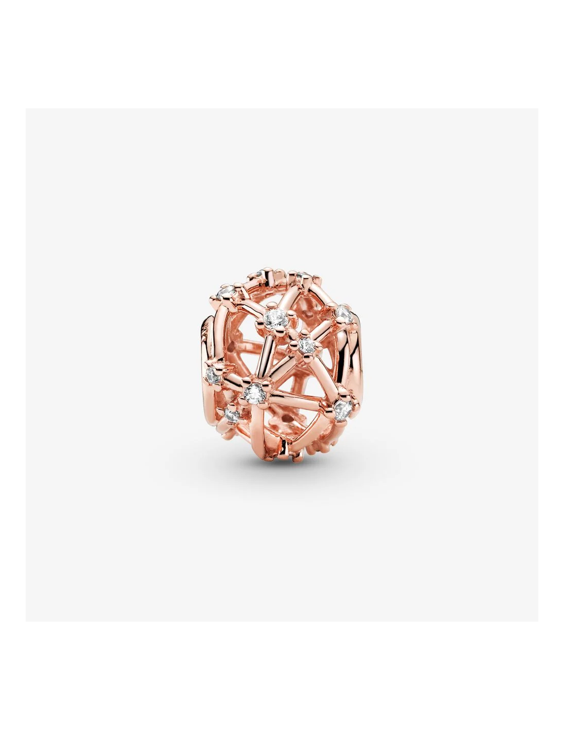 Cerca le risposte nelle notti stellate con questo charm openwork Costellazioni. Rifinito a mano e realizzato in Pandora Rose (la nostra esclusiva lega metallica con placcatura in Oro rosa 14K), il charm si ispira a un gioiello dedicato alla galassia conservato negli archivi Pandora. Le pietre incolori sono incastonate lungo le linee arrotondate con lavorazione openwork del charm per rappresentare le costellazioni nello spazio. Indossalo insieme ad altri charm a tema celestiale sul tuo bracciale Pandora Moments preferito per dimostrare il tuo amore per l’universo.