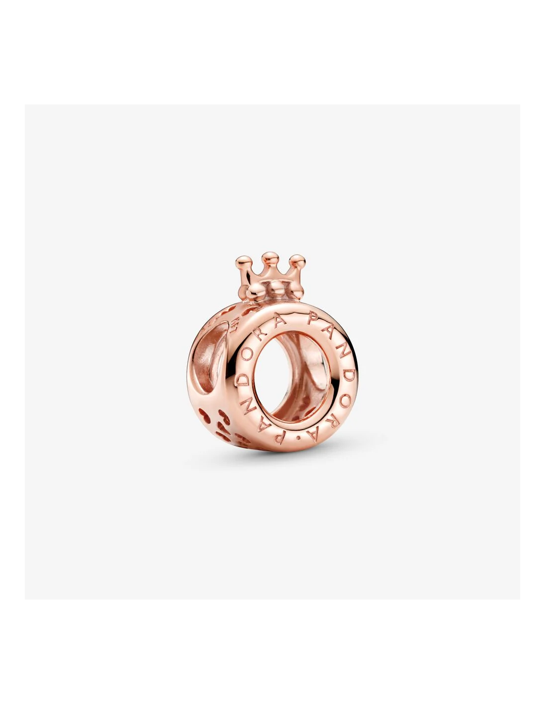 Aggiungi un tocco principesco al tuo look con questo Charm Pandora con logo e O coronata. Rifinito a mano in Pandora Rose (la nostra esclusiva lega metallica con placcatura in Oro rosa 14K)
