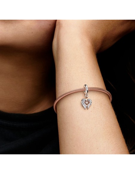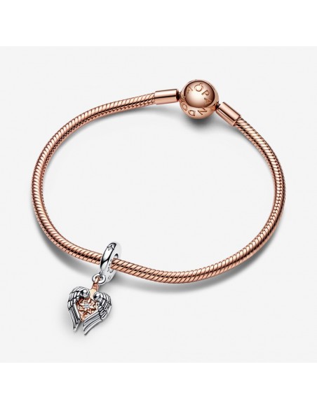 Lasciati guidare dalle stelle con questo romantico charm che presenta un pendente a forma di bussola nell'esclusiva lega metallica placcata oro rosa 14k con un motivo a stella a otto punte, completato da ali d'angelo mobili in Argento Sterling 925 con piume intagliate. Apri le ali per rivelare il messaggio inciso: "YOU ARE MY SHINING STAR" (Sei la mia stella splendente). Una pietra di zirconia cubica al centro della bussola e un'altra sull'anello passante in Argento Sterling 925 aggiungono un tocco celestiale a questo charm. Il regalo perfetto per l’angelo della tua vita.