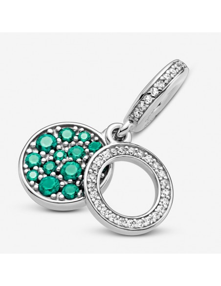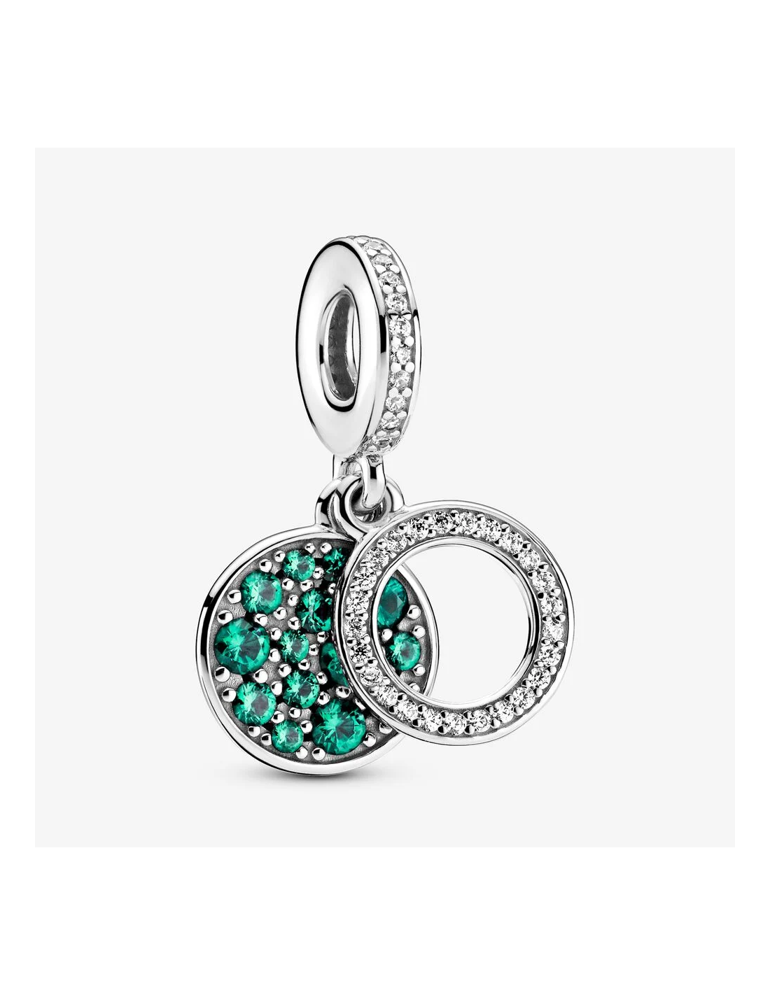 Aggiungi un tocco di colore alla tua collezione con questo charm pendente doppio con disco verde scintillante.