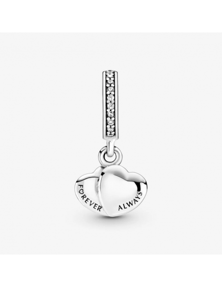 Esprimi il tuo amore con questo charm pendente Doppio cuore bicolore. Rifinito a mano e realizzato in Argento Sterling 925 e Oro 14K, il gioiello è composto da due dischi a forma di cuore che si sovrappongono in un angolo, rimanendo fissati uno all’altro. Il cuore anteriore in Oro 14K è inserito su una cornice d’argento. Il charm è completato dalle incisioni “Always” e “Forever” che appaiono sul retro dei cuori e da pietre incolori sul gancio che aggiungono dettagli e brillantezza. Regalalo a una persona speciale per dimostrarle quanto tieni a lei.
