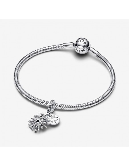Aggiungi il nuovo Charm Pendente Fuoco d'Artificio alla tua collezione per un tocco di divertimento. Realizzato in Argento Sterling 925, un pendente presenta un fuoco d'artificio con una stella intagliata al centro ed è impreziosito da pietre luminose. Il secondo pendente reca il messaggio "THE FUTURE IS BRIGHT" (Il futuro è luminoso), che lo rende l'augurio perfetto da regalare a una persona che illumina la tua vita.